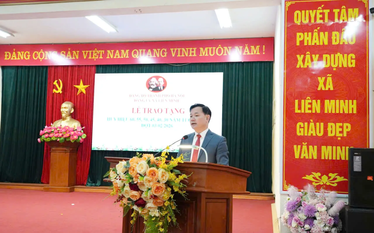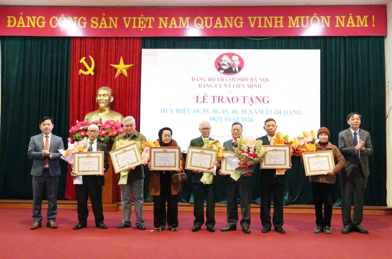 Kinhtedothi - Sáng 28/1, Đảng ủy xã Liên Minh trang trọng tổ chức Lễ kỷ niệm 96 năm Ngày thành lập Đảng Cộng sản Việt Nam (3/2/1930 - 3/2/2026), trao Huy hiệu Đảng đợt 3/2/2026.