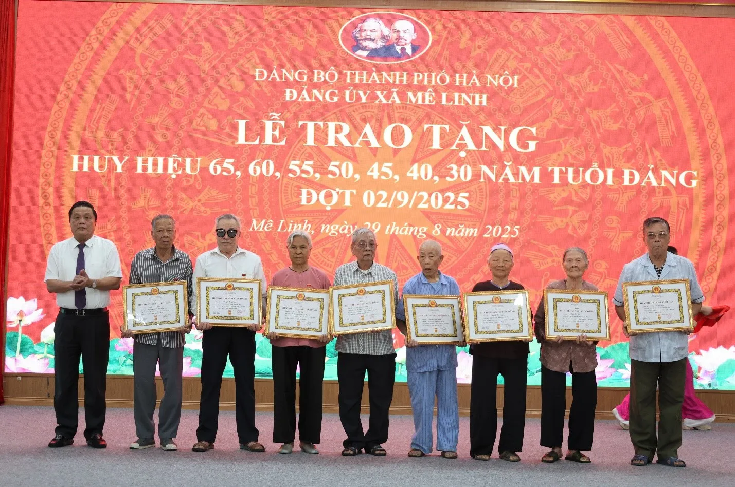 Trong đợt này, Đảng bộ xã Mê Linh có 53 đảng viên vinh dự được nhận Huy hiệu Đảng. Trong đó có 3 đồng chí 65 tuổi Đảng, 12 đồng chí 60 năm tuổi Đảng, 2 đồng chí 55 năm tuổi Đảng, 3 đồng chí 50 năm tuổi Đảng, 14 đồng chí nhận Huy hiệu 45 năm tuổi Đảng, 7 đồng chí nhận Huy hiệu 40 năm tuổi Đảng, 12 đồng chí nhận Huy hiệu 30 năm tuổi Đảng.