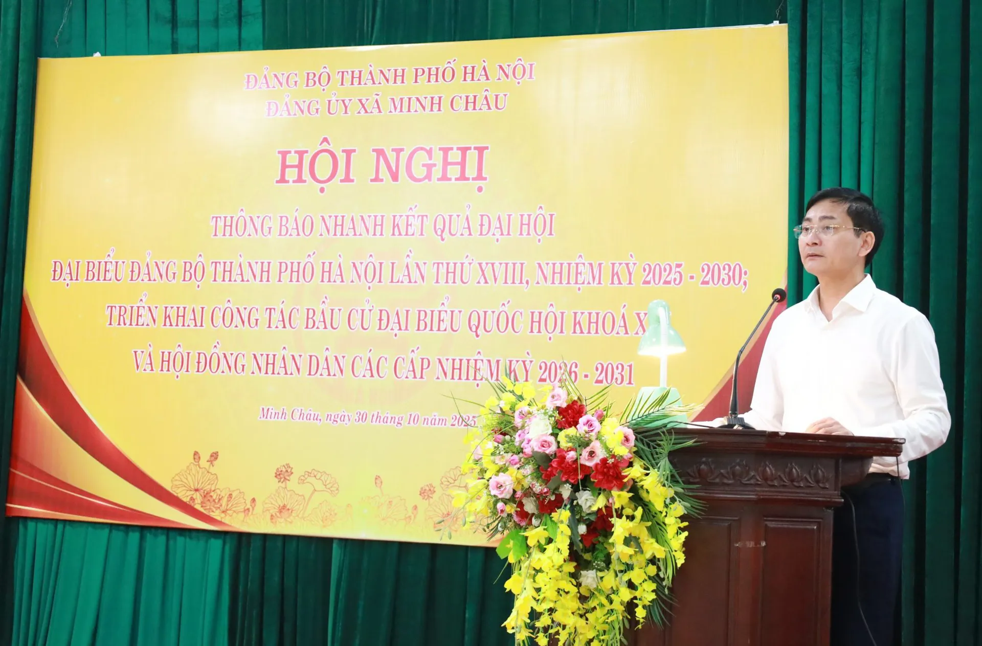 Xã Minh Châu tổ chức hội nghị thông tin kết quả Đại hội đại biểu Đảng bộ TP Hà Nội lần thứ XVIII, nhiệm kỳ 2025 – 2030 và triển khai công tác bầu cử đại biểu Quốc hội, HĐND các cấp nhiệm kỳ 2026 – 2031.