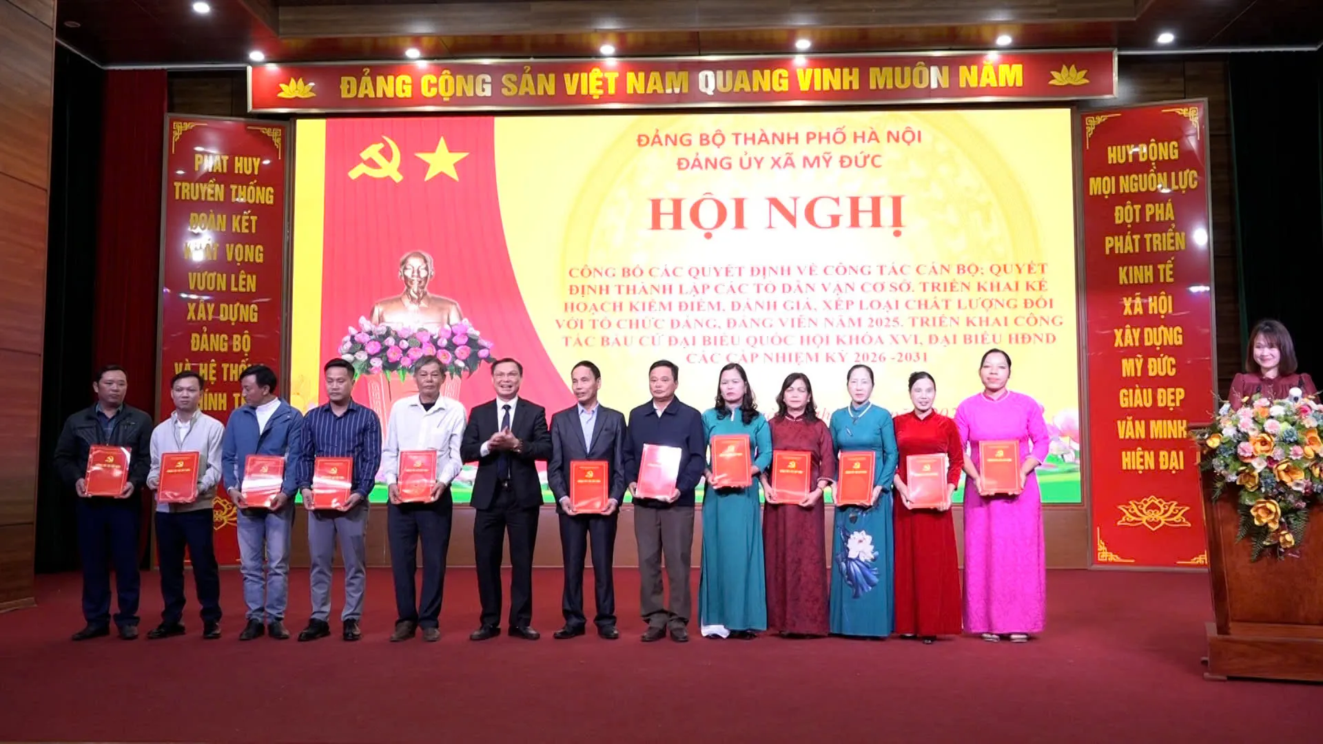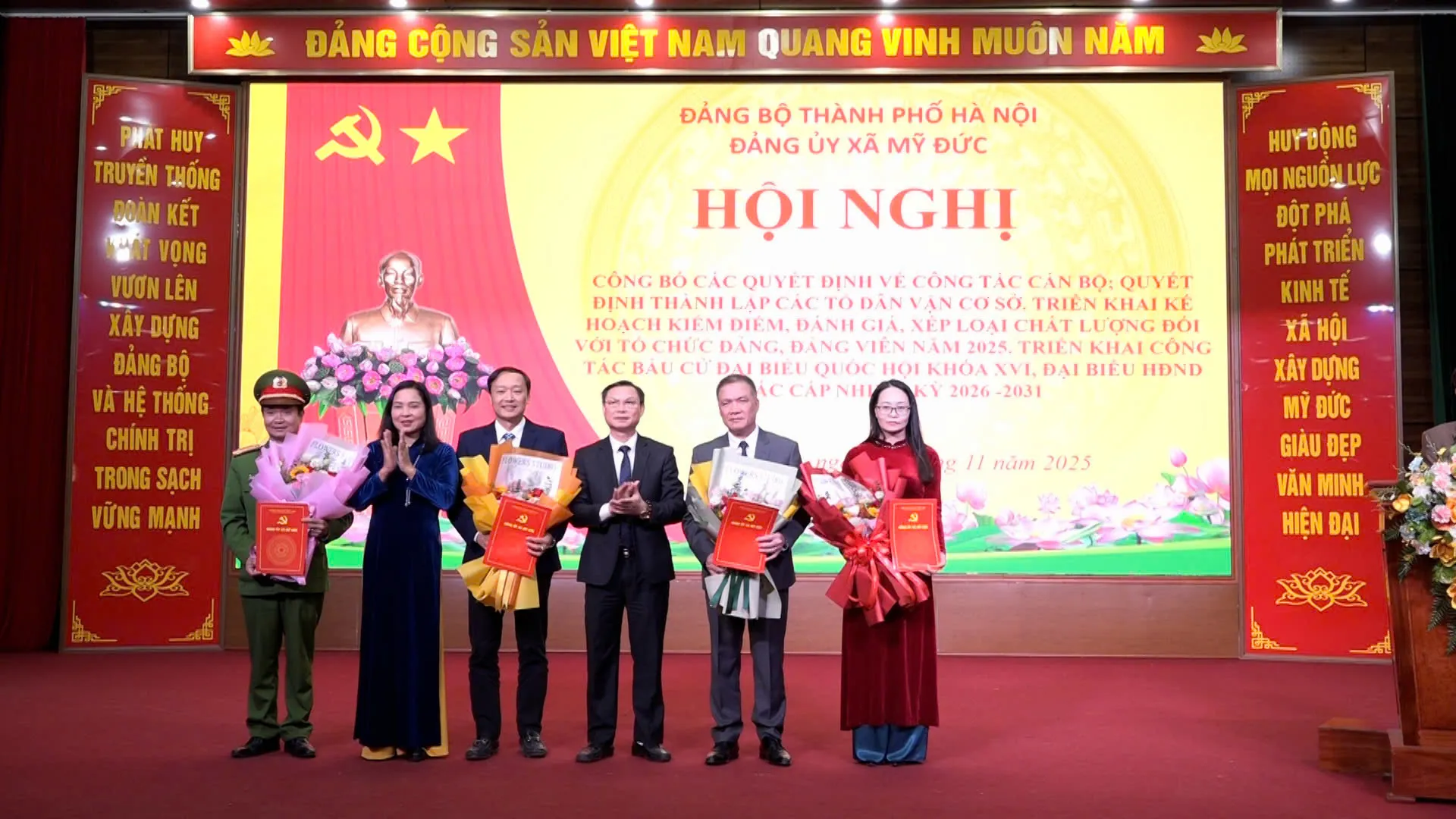 Chỉ định bổ sung Ủy viên BCH Đảng bộ UBND xã Mỹ Đức nhiệm kỳ 2025 – 2030 đối với đồng chí Đinh Thị Thu Hiền, Chánh Văn phòng HĐND – UBND xã. Chỉ định bổ sung Ủy viên BCH Đảng bộ Công an xã Mỹ Đức nhiệm kỳ 2025 – 2030 đối với đồng chí Trần Văn Triêm, Phó Trưởng Công an xã. Chuẩn y kết quả bầu Bí thư Chi bộ Trường THPT Mỹ Đức A, nhiệm kỳ 2025 – 2030 đối với đồng chí Đào Huy Nam, Hiệu trưởng nhà trường.