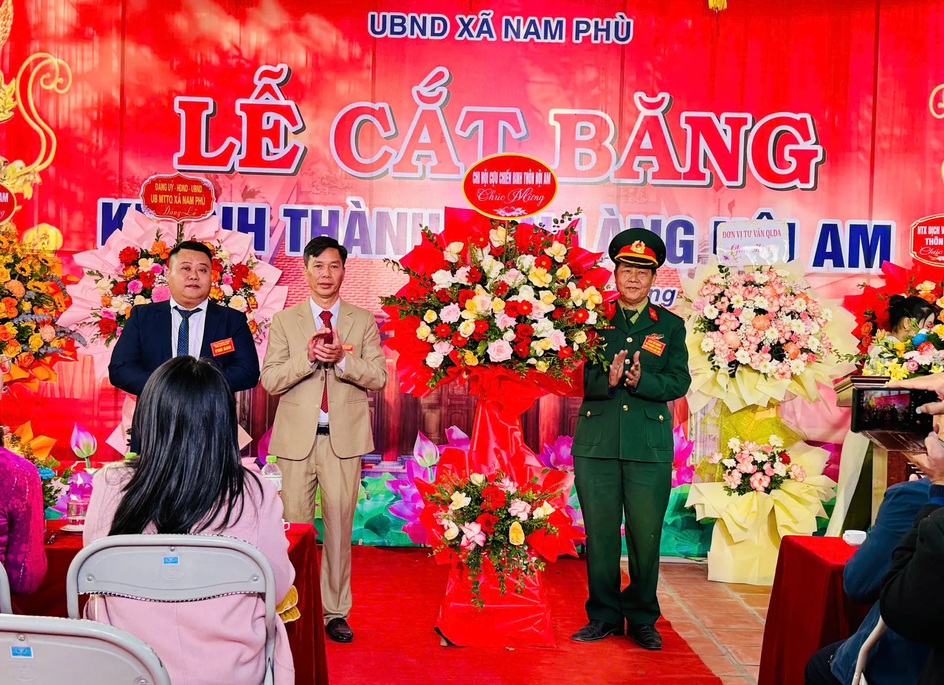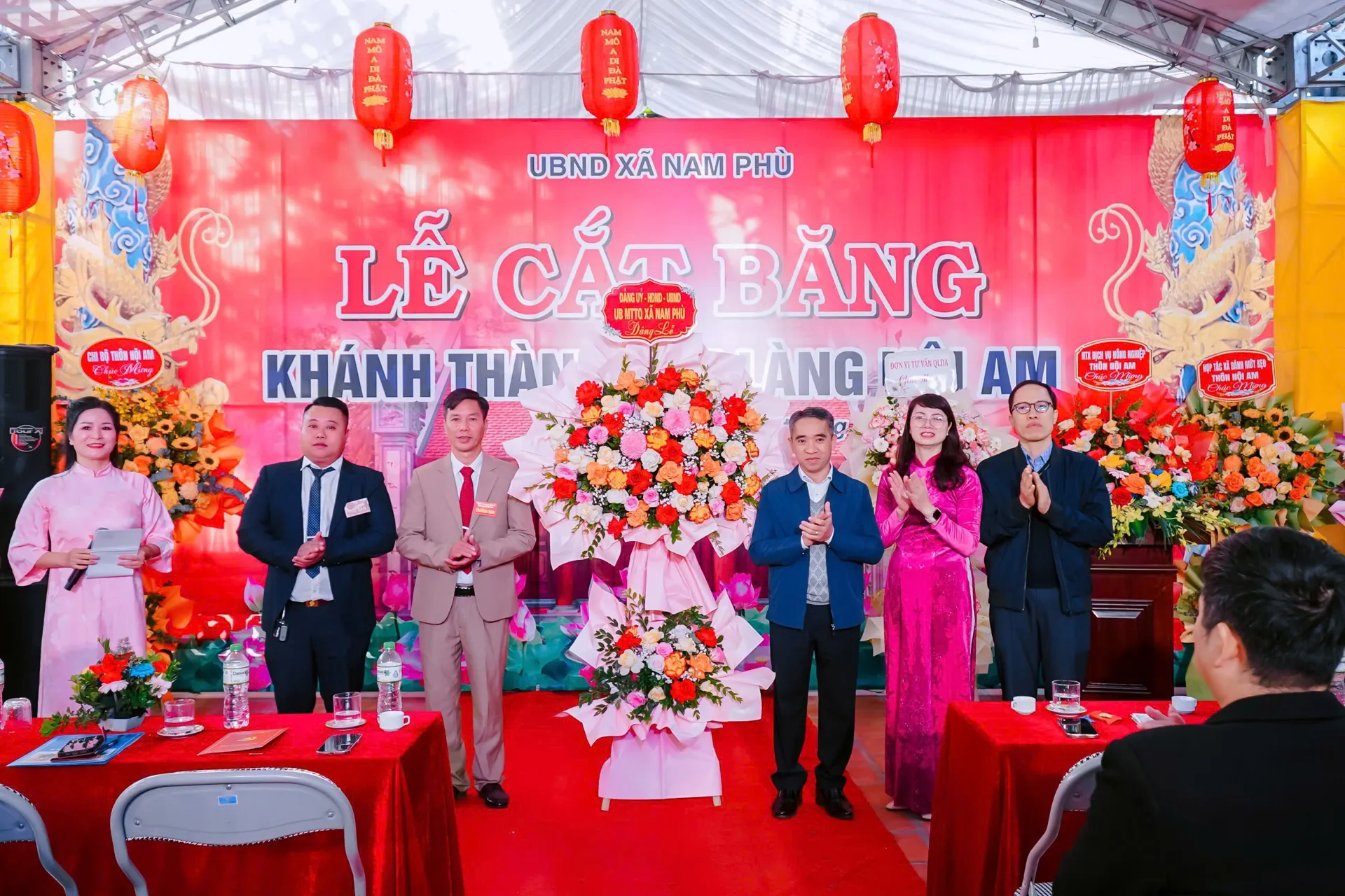 Lãnh đạo xã Nam Phù tặng hoa chúc mừng thôn Nội Am.