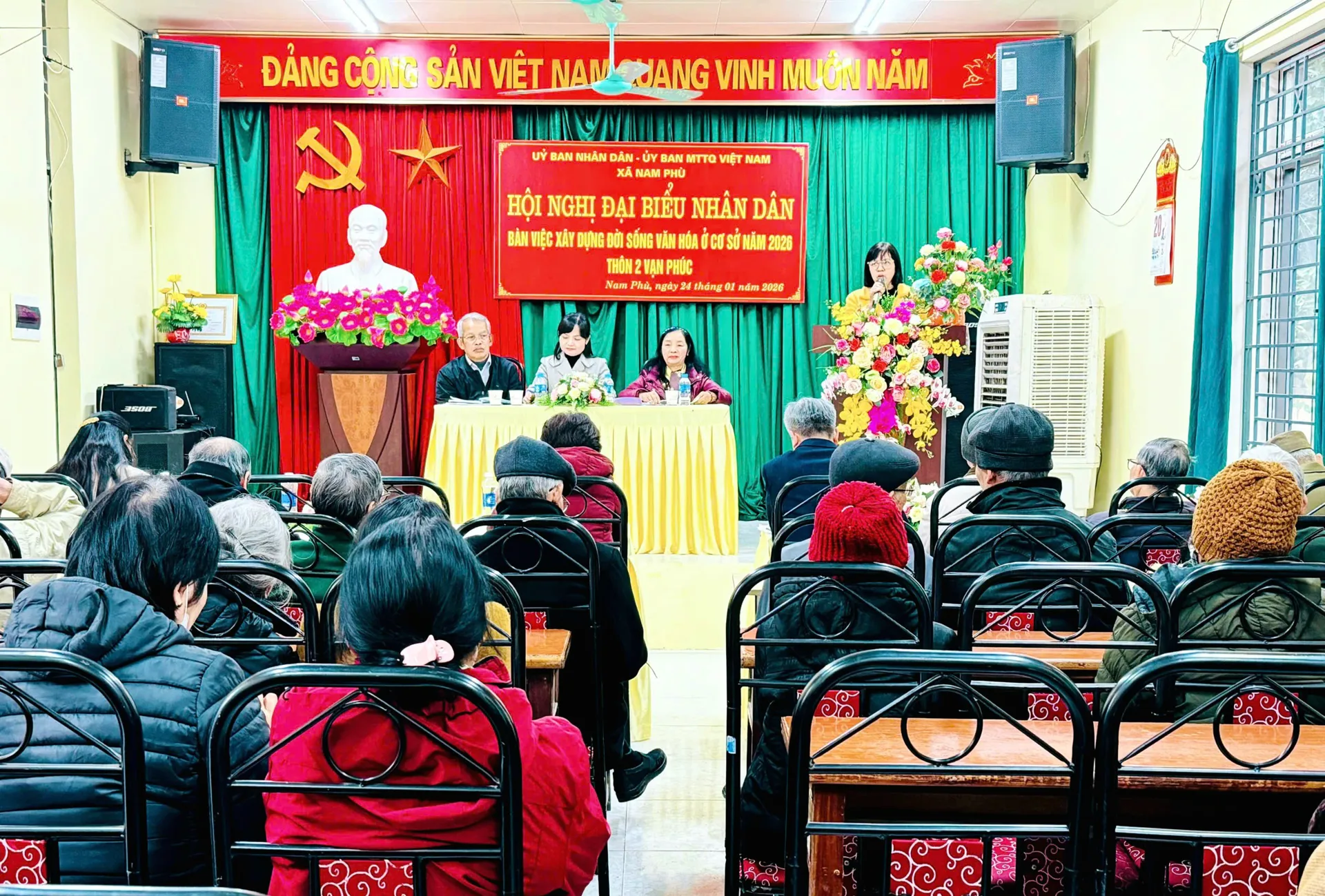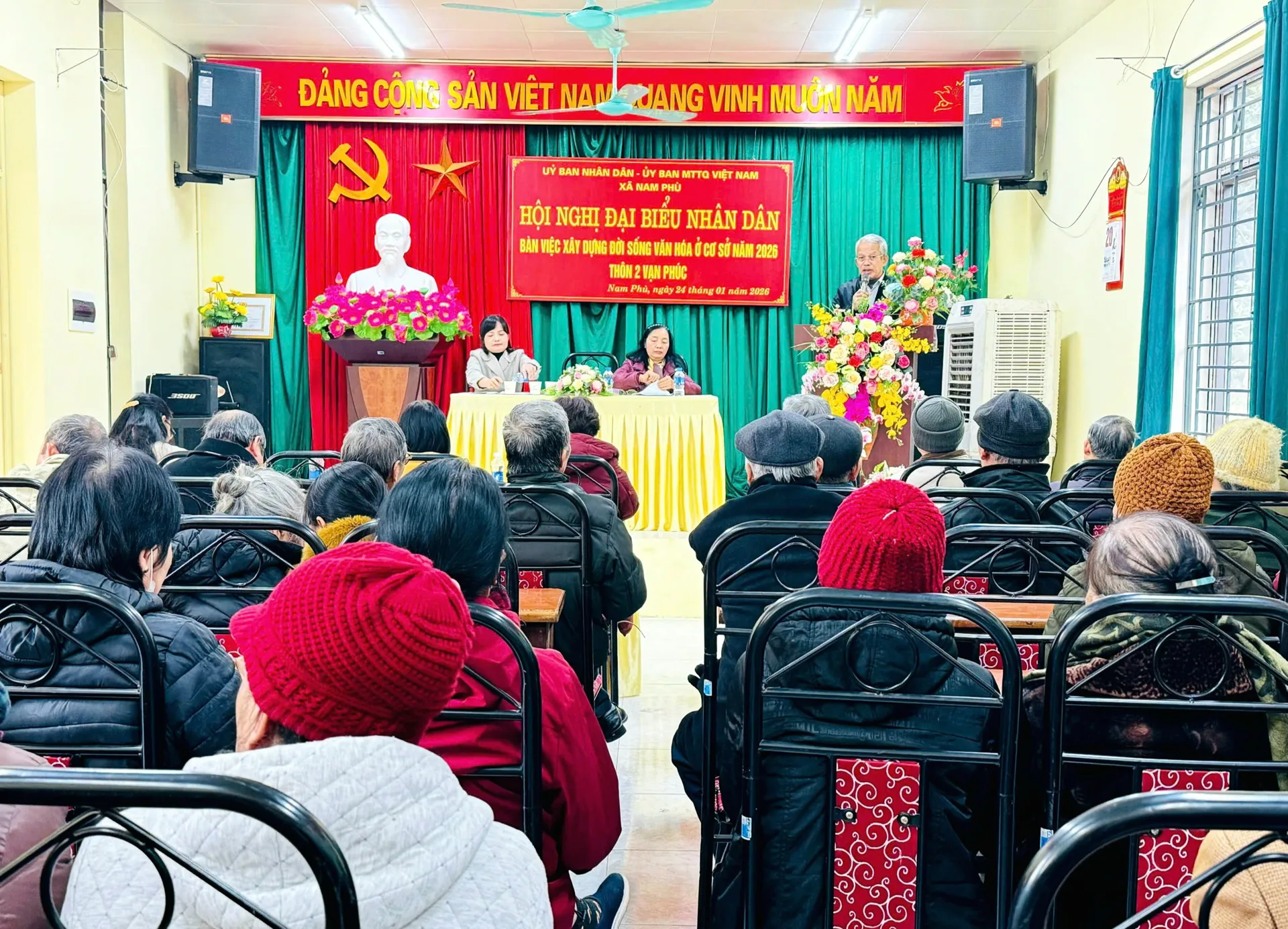 Kinhtedothi-Chiều 24/1, thôn 2 Vạn Phúc (xã Nam Phù) tổ chức hội nghị đại biểu Nhân dân bàn xây dựng đời sống văn hóa cơ sở năm 2026 và lắng nghe Nhân dân nói. Hội nghị là minh chứng sinh động cho việc cụ thể hóa chủ trương của Đảng về thực hành dân chủ ở cơ sở, gắn với xây dựng đời sống văn hóa, củng cố khối đại đoàn kết toàn dân tộc.