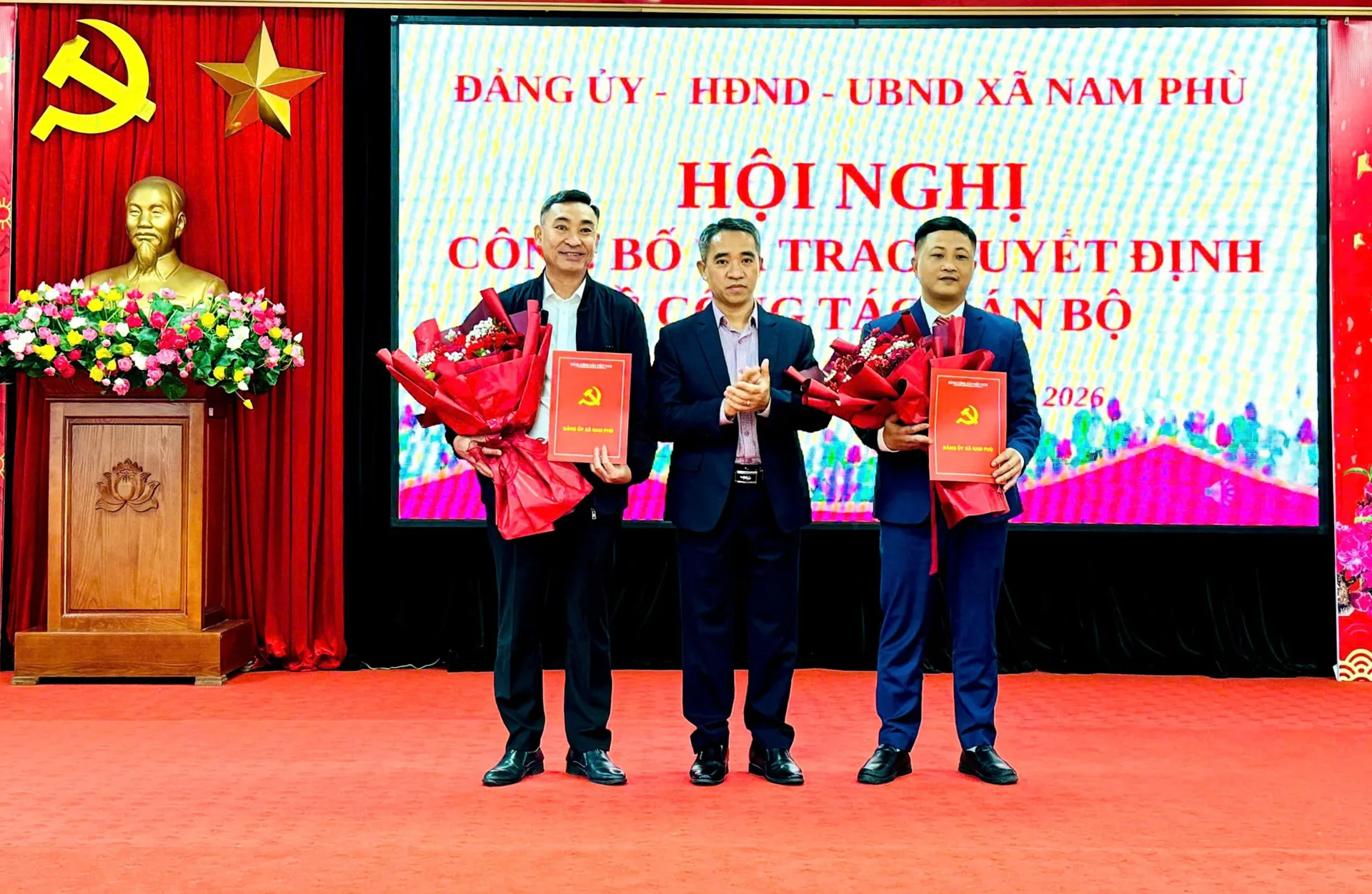 Kinhtedothi-Thực hiện nghiêm các quy định của Đảng về công tác cán bộ, đáp ứng yêu cầu kiện toàn tổ chức bộ máy và nâng cao hiệu lực, hiệu quả hoạt động của hệ thống chính trị cơ sở, ngày 11/2, Đảng ủy – HĐND – UBND xã Nam Phù tổ chức hội nghị công bố và trao các quyết định về công tác cán bộ đối với một số chức danh lãnh đạo, quản lý tại các cơ quan, đơn vị trên địa bàn xã.