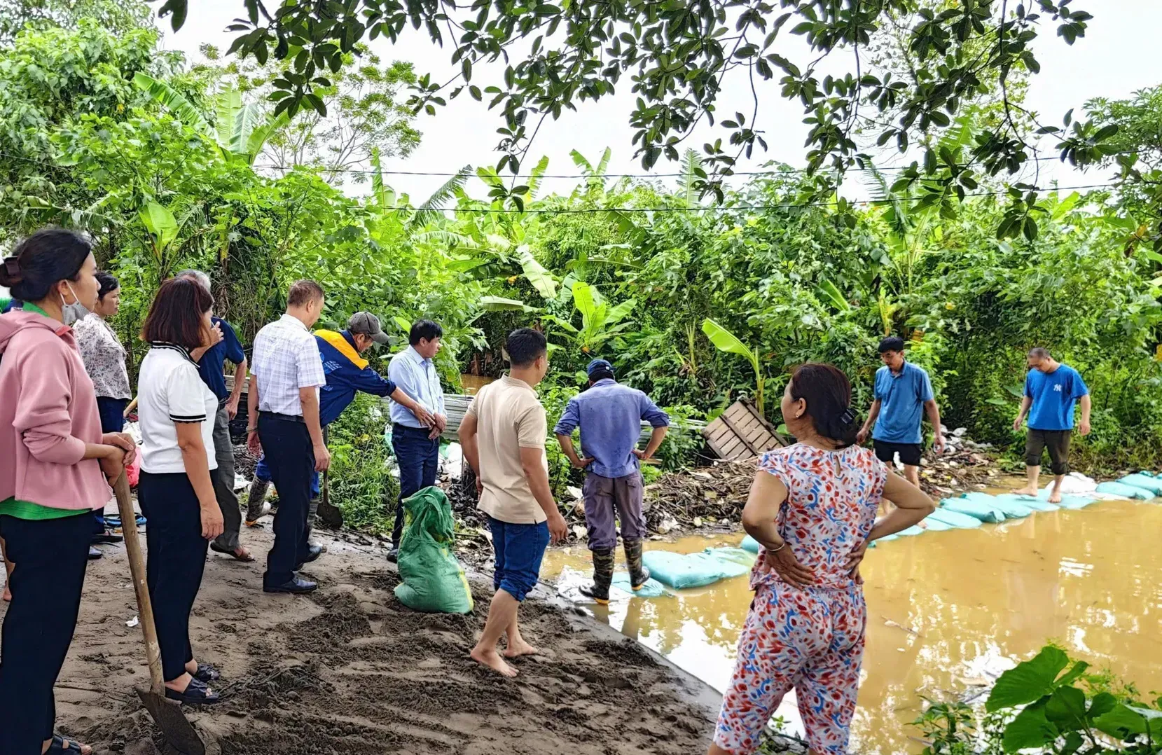 Chủ tịch Ủy ban MTTQ Việt Nam xã Nam Phù Phạm Văn Thành cùng lãnh đạo xã Nam Phù và các phòng ban trực tiếp kiểm tra, chỉ đạo tại hiện trường.