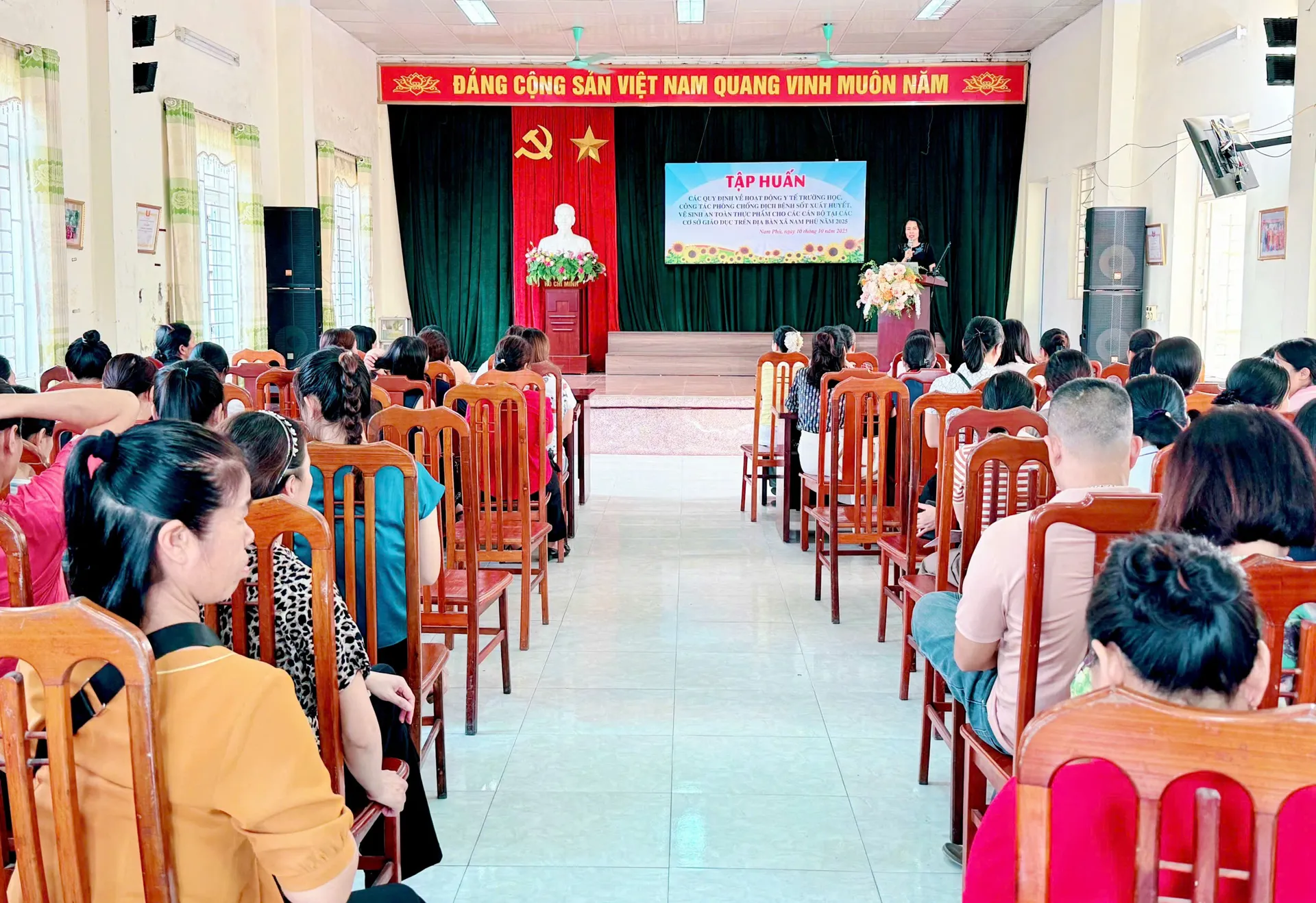 Buổi tập huấn diễn ra trong không khí nghiêm túc, thiết thực, giúp đội ngũ cán bộ, nhân viên y tế trường học và cô nuôi nâng cao nhận thức, trách nhiệm và kỹ năng chuyên môn, góp phần đảm bảo môi trường học đường an toàn, phòng ngừa hiệu quả dịch bệnh trên địa bàn xã.