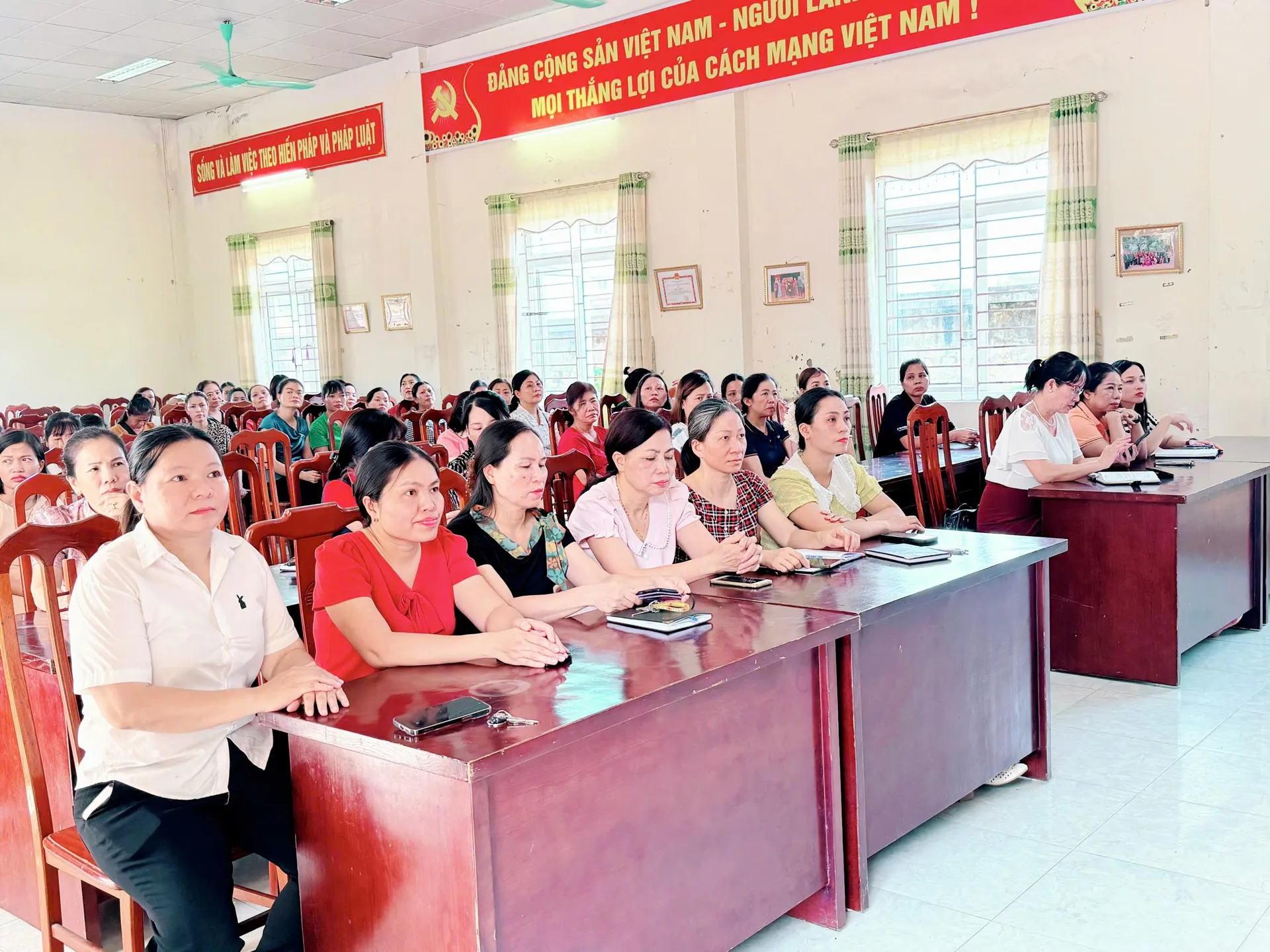 Tham dự buổi tập huấn có đại diện Ban Giám hiệu, cán bộ phụ trách công tác y tế trường học, cùng toàn thể cô nuôi của các trường mầm non và nhóm lớp trên địa bàn xã.