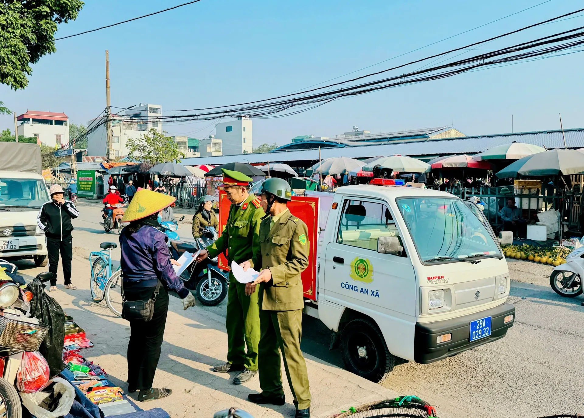 Lực lượng chức năng xã Nam Phù ra quân xử lý "điểm nghẽn" trật tự đô thị.