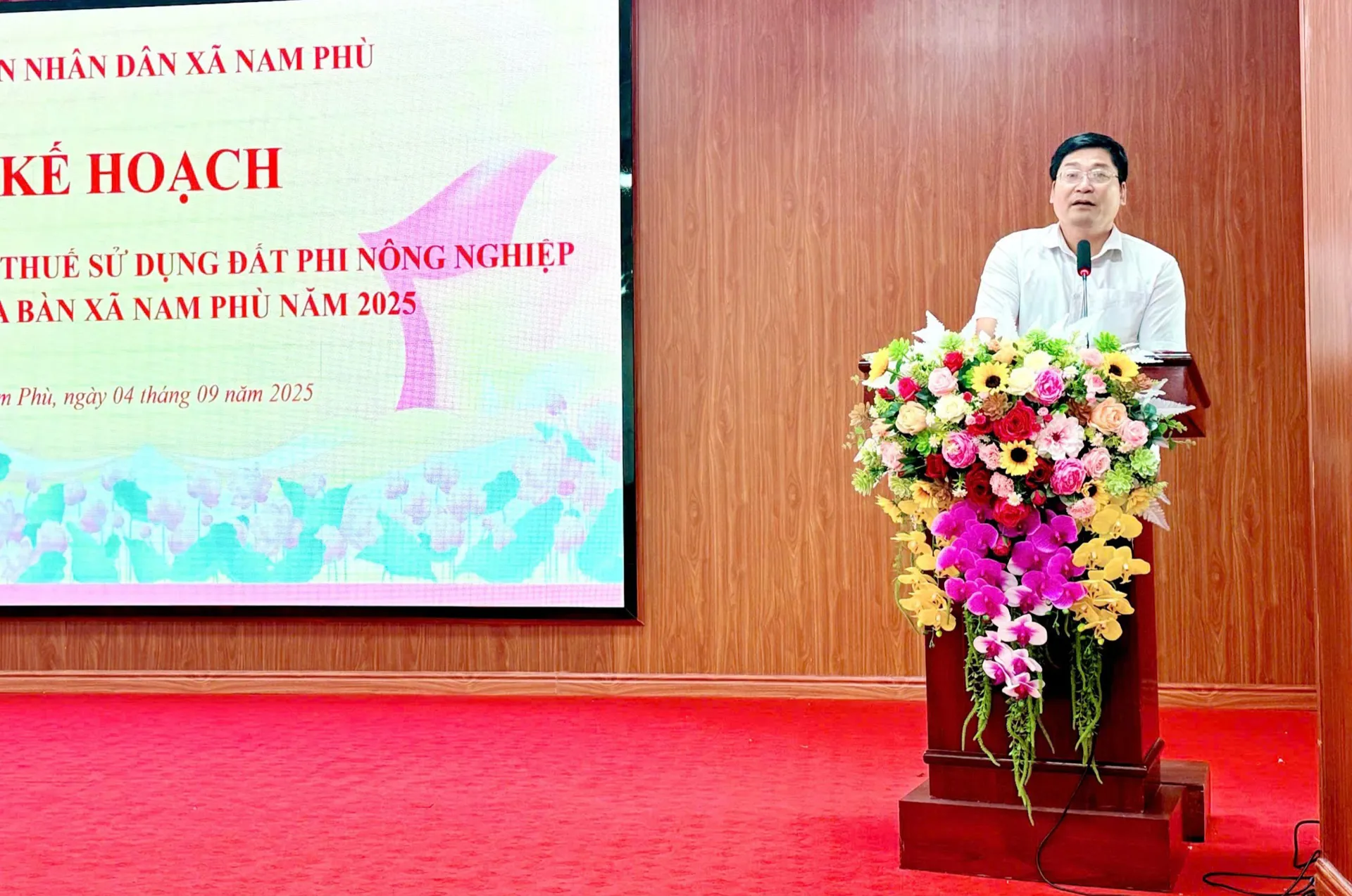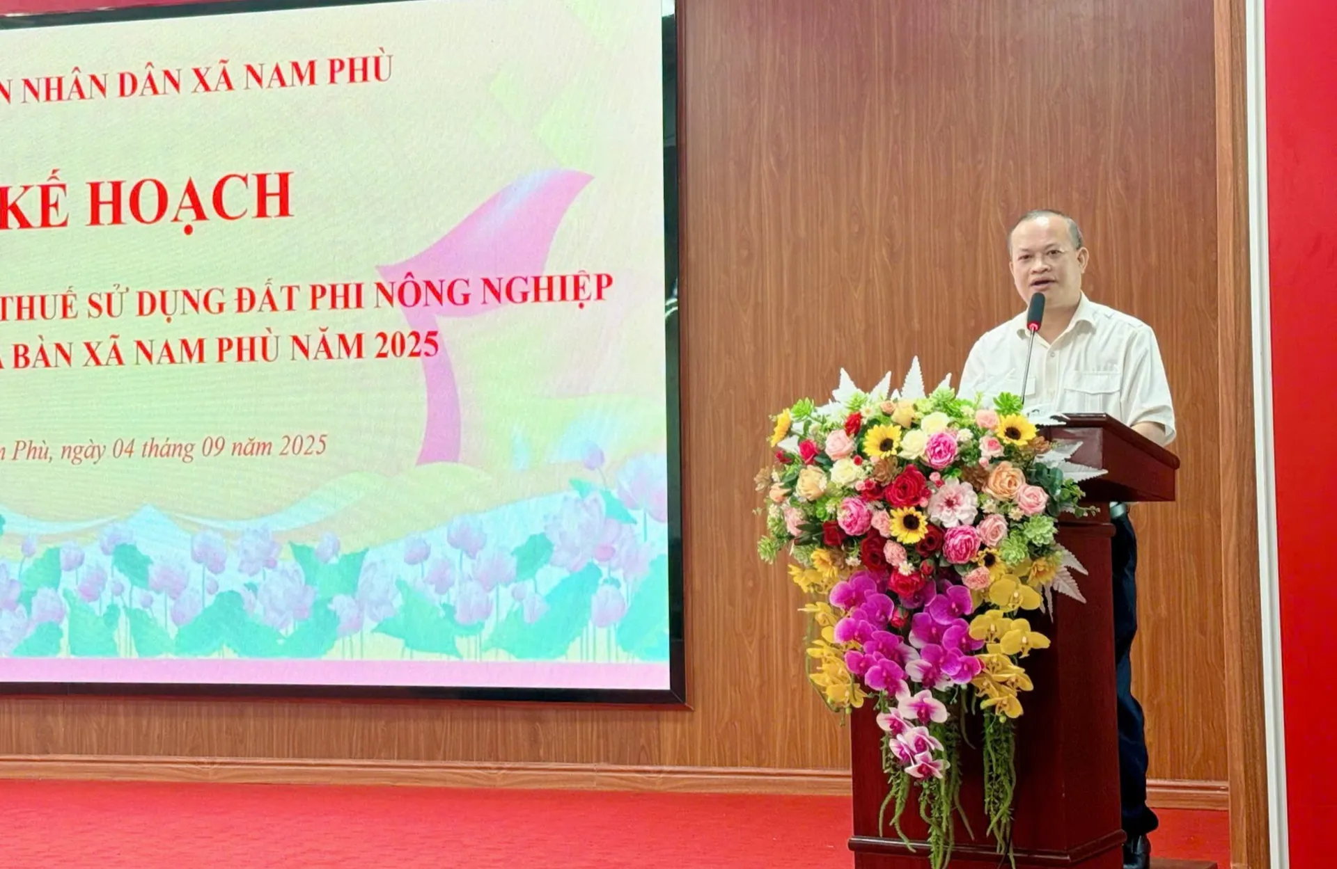 Tại hội nghị, Phó Trưởng phòng Kinh tế xã Nam Phù Nguyễn Trung Kiên đã triển khai kế hoạch thu thuế sử dụng đất phi nông nghiệp năm 2025 bằng phương thức điện tử thông qua ứng dụng eTax Mobile và các hình thức thanh toán không dùng tiền mặt.