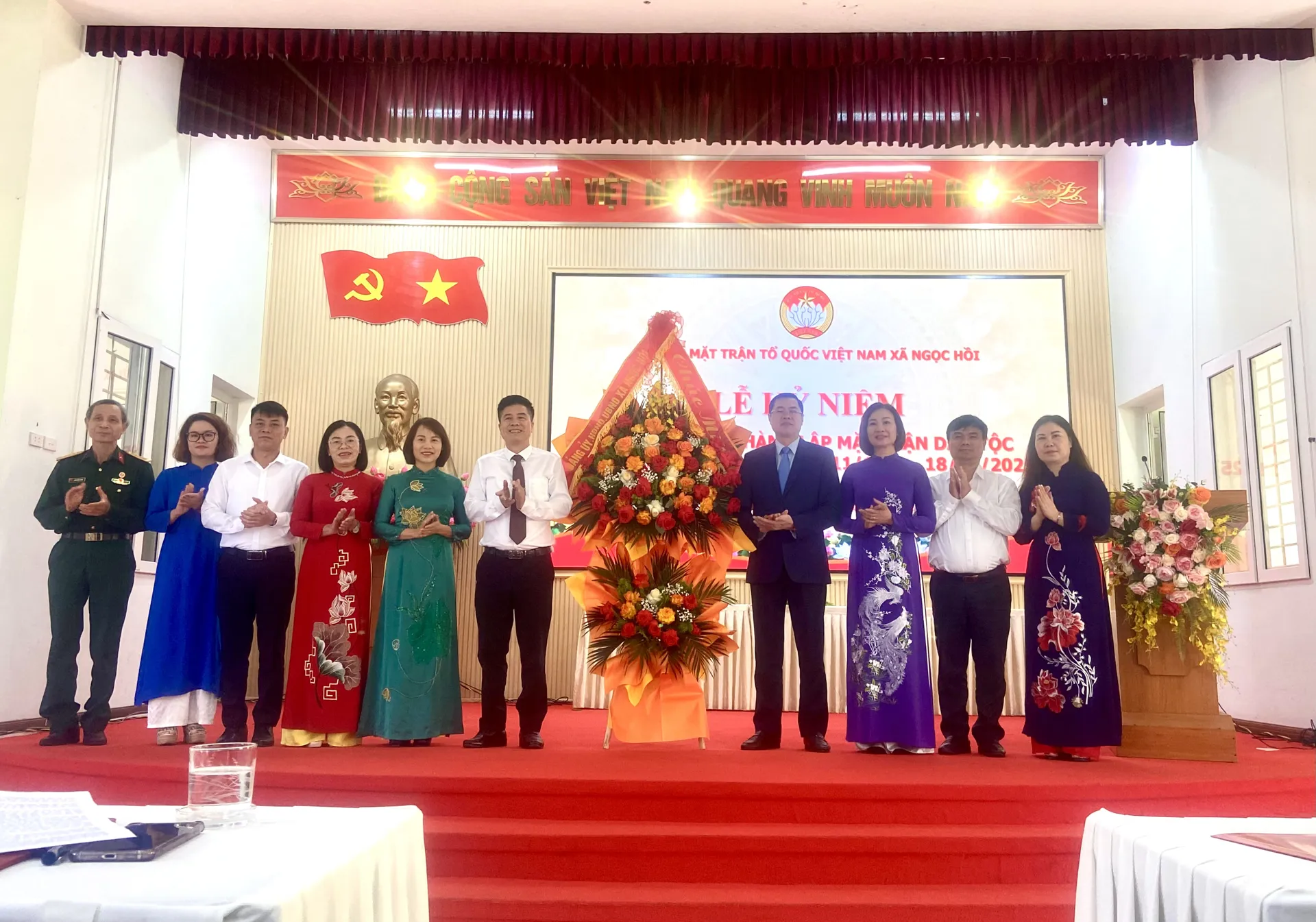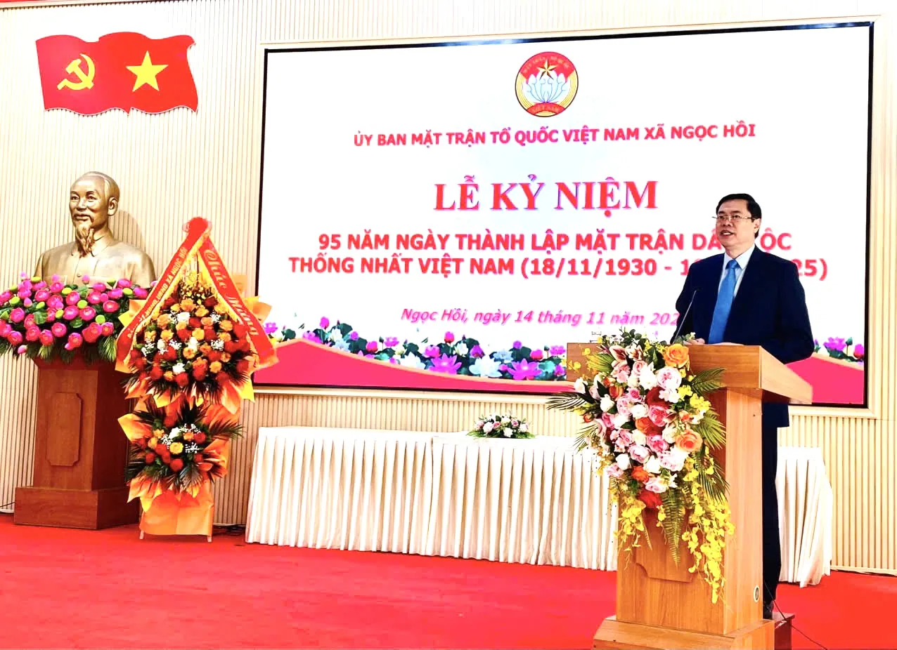 Tại buổi lễ, Chủ tịch Ủy ban MTTQ Việt Nam xã Ngọc Hồi Vũ Hồng Khanh cùng các đại biểu đã ôn lại truyền thống vẻ vang của MTTQ Việt Nam suốt 95 năm qua, nhấn mạnh vai trò quan trọng của tổ chức trong việc tập hợp, đoàn kết toàn dân, phát huy quyền làm chủ của Nhân dân, tham gia xây dựng Đảng, chính quyền vững mạnh, đồng thời tích cực triển khai các phong trào thi đua yêu nước, các cuộc vận động nhân văn sâu sắc, như: “Toàn dân đoàn kết xây dựng nông thôn mới, đô thị văn minh”, “Cả nước chung tay vì người nghèo”, “Người Việt Nam ưu tiên dùng hàng Việt Nam”...