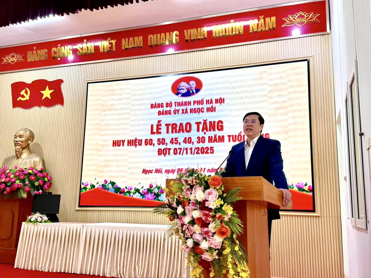 Bí thư Đảng ủy xã Ngọc Hồi Nguyễn Xuân Phong đề nghị các đảng viên vinh dự được nhận Huy hiệu Đảng hôm nay tiếp tục phát huy phẩm chất cách mạng, tinh thần trách nhiệm, tích cực đóng góp ý kiến cùng cấp ủy, chi bộ trong lãnh đạo, chỉ đạo, triển khai hiệu quả các nhiệm vụ chính trị của địa phương; góp phần cùng Đảng bộ, chính quyền và Nhân dân xã Ngọc Hồi thực hiện thắng lợi Nghị quyết Đại hội Đảng bộ xã lần thứ I, nhiệm kỳ 2025–2030.