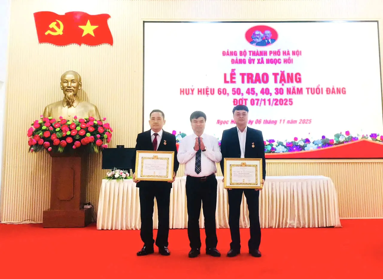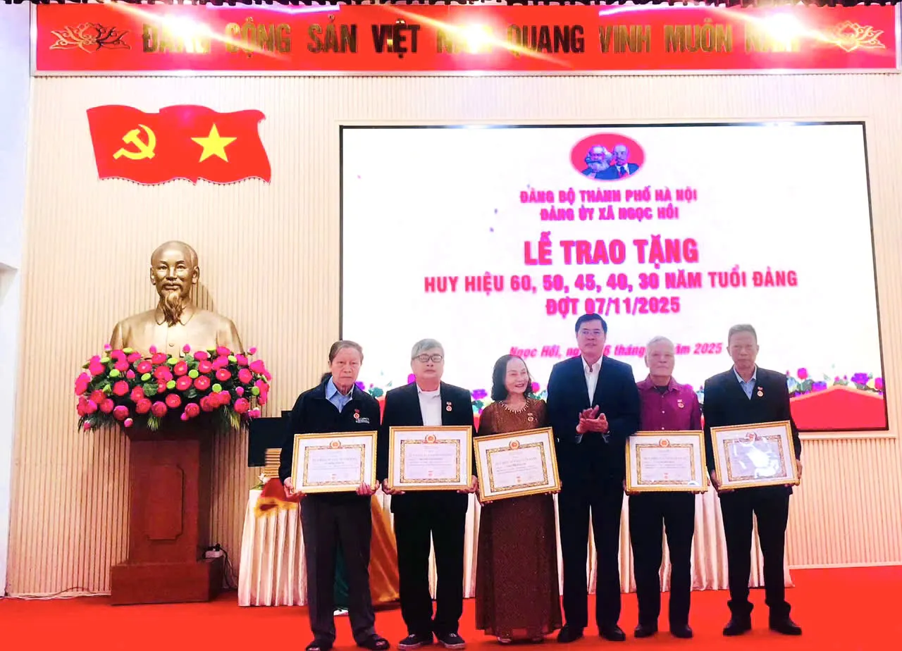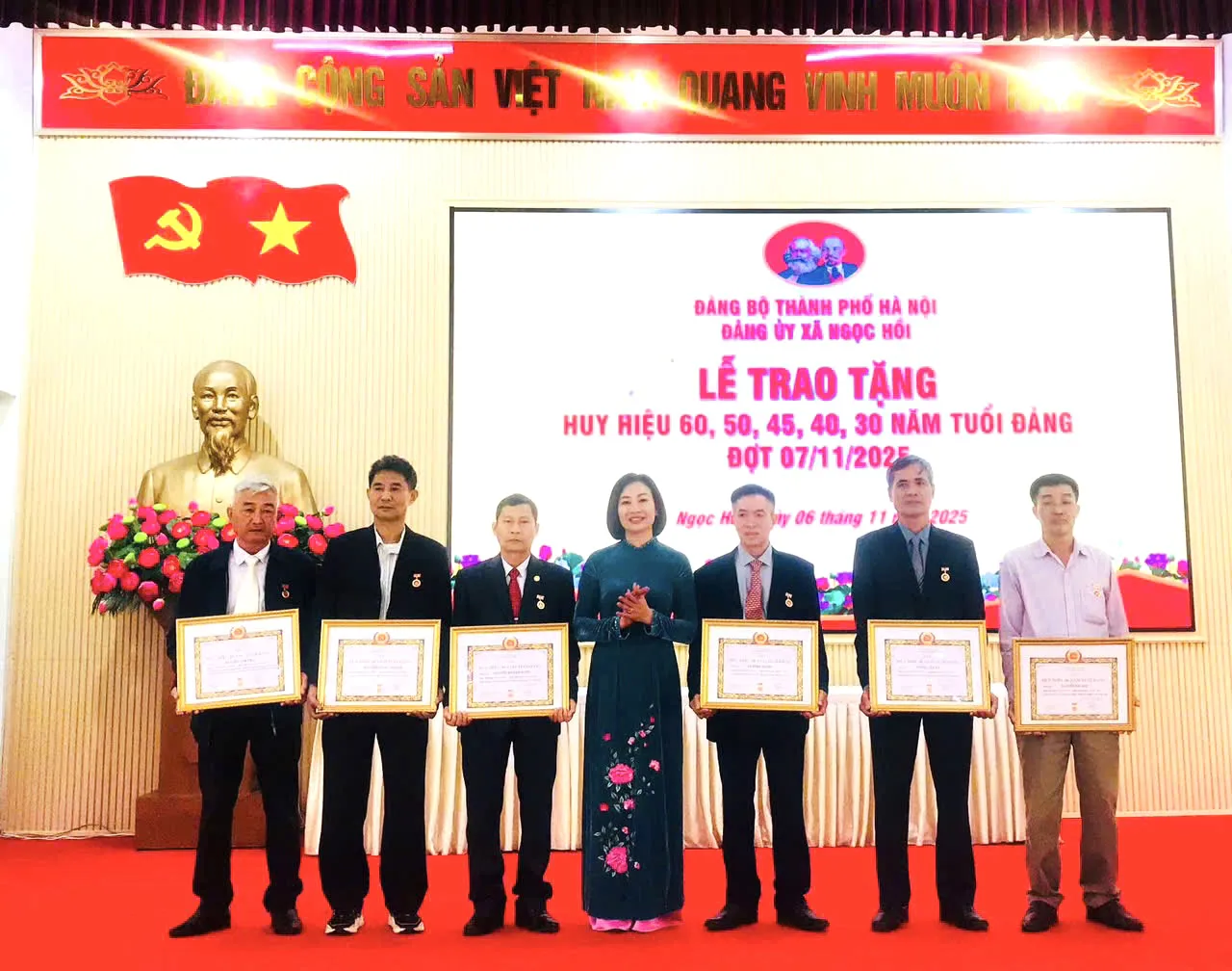 Kinhtedothi-Thiết thực chào mừng thành công Đại hội Đảng bộ các cấp nhiệm kỳ 2025–2030, hướng tới Đại hội Đảng toàn quốc lần thứ XIV, ngày 6/11, Đảng ủy xã Ngọc Hồi long trọng tổ chức lễ trao tặng Huy hiệu Đảng đợt 7/11 cho 16 đảng viên.
