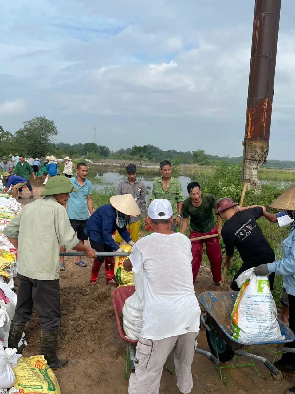 Dưới đây là một số hình ảnh người dân tham gia hộ đê tại xã Nội Bài: