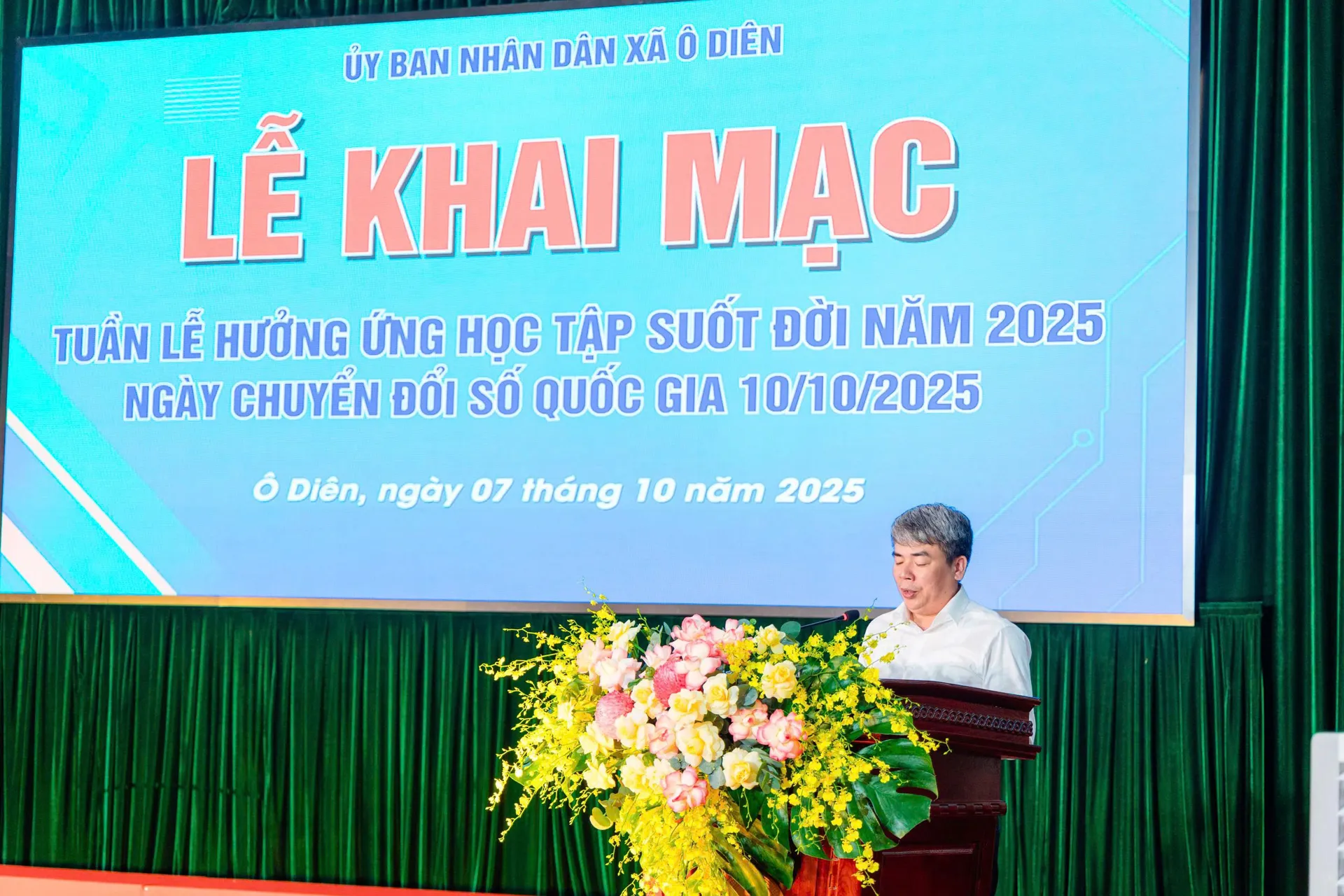Kinhtedothi - Chiều 7/10, UBND xã Ô Diên (TP Hà Nội) tổ chức khai mạc Tuần lễ hưởng ứng học tập suốt đời năm 2025, hưởng ứng Ngày Chuyển đổi số quốc gia (10/10).