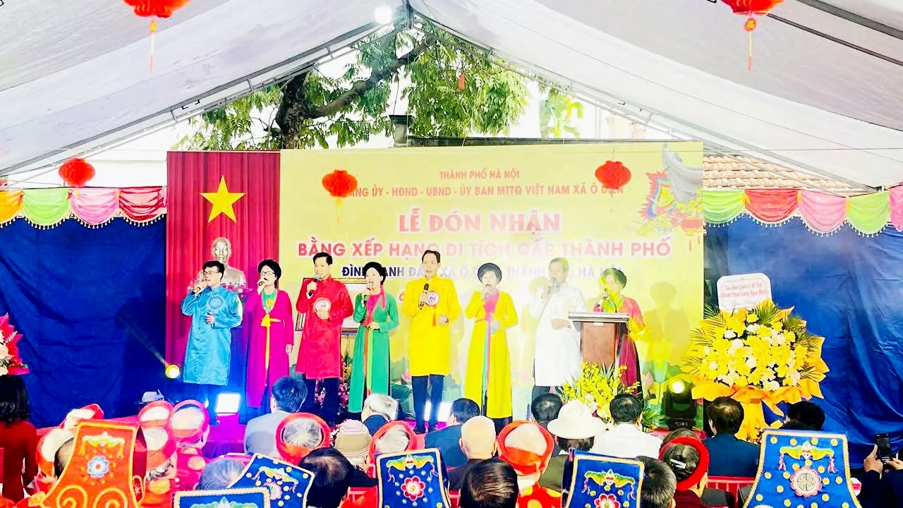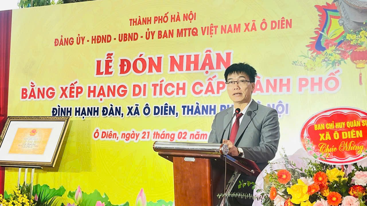 Tại buổi lễ, Đảng ủy - HĐND - UBND - Ủy ban MTTQ xã Ô Diên đã công bố Quyết định và trang trọng tổ chức nghi thức trao Bằng xếp hạng di tích lịch sử - văn hóa cấp Thành phố cho đại diện Tiểu ban Quản lý di tích và cộng đồng dân cư thôn Hạnh Đàn. Nghi thức trao Bằng diễn ra trang trọng, đánh dấu mốc son quan trọng trong công tác bảo tồn và phát huy di sản văn hóa tại địa phương.