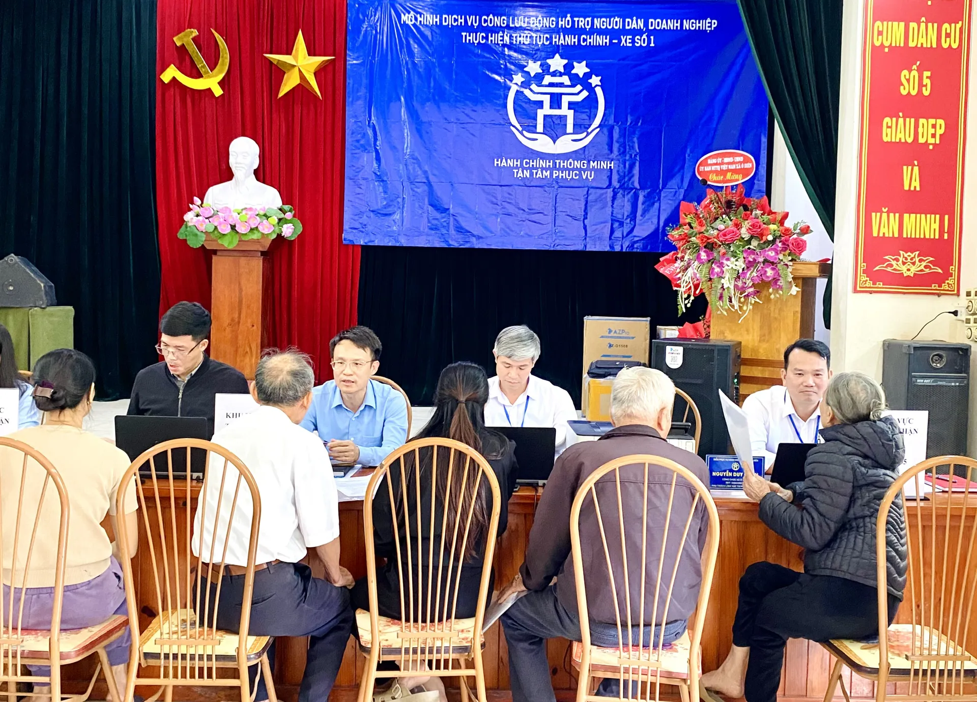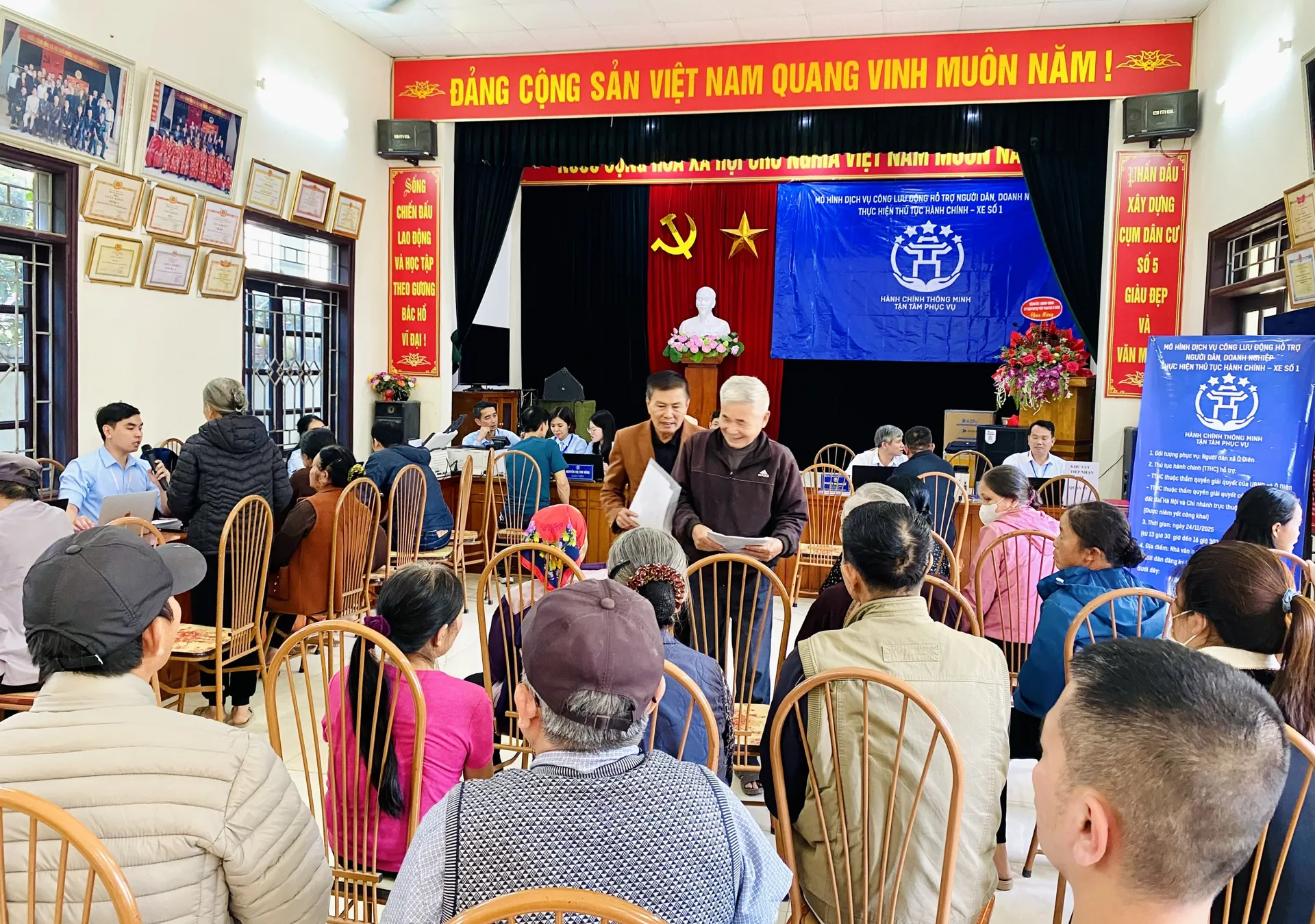 Kinhtedothi - Chiều 24/11, tại Nhà văn hóa cụm 5, Hạ Mỗ, xã Ô Diên, Trung tâm Phục vụ hành chính công TP Hà Nội phối hợp với UBND xã Ô Diên tổ chức “Mô hình dịch vụ công lưu động” hỗ trợ người dân, doanh nghiệp thực hiện thủ tục hành chính.