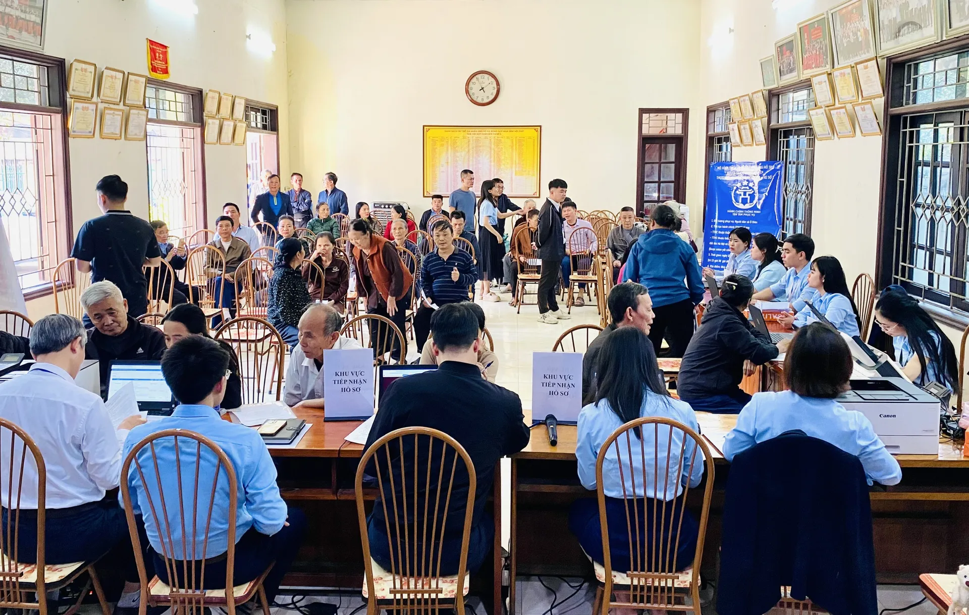 Rất đông người dân đến làm thủ tục hành chính tại điểm lưu động.