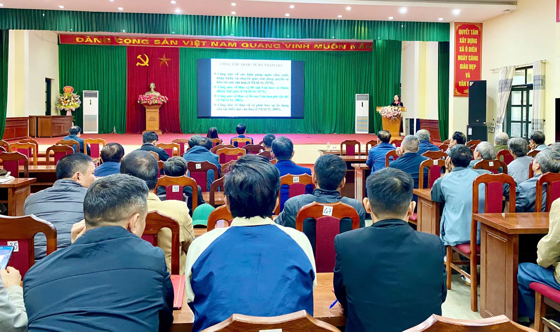 Tại hội nghị, các đại biểu đã được nghe TS Phạm Thị Lan Anh - Trưởng phòng Quản lý di sản văn hóa (Sở VH&TT Hà Nội) truyền đạt các kiến thức quản lý Nhà nước về di sản văn hóa và tổ chức lễ hội năm 2025.