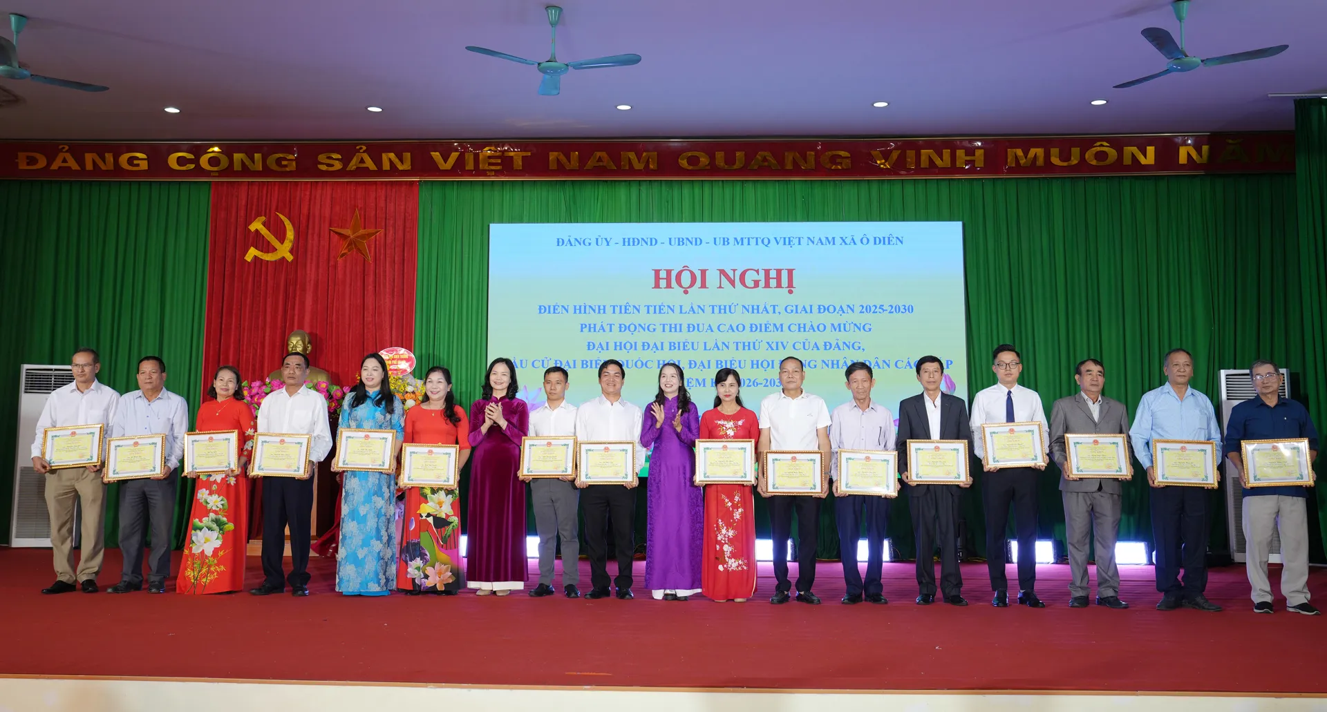 Tại hội nghị, có 3 tập thể, 8 cá nhân được trao tặng Bằng khen của UBND TP vì có thành tích xuất sắc trong phong trào thi đua giai đoạn 2020 – 2025. Nhân dịp này, UBND xã Ô Diên đã tặng Giấy khen cho 32 tập thể, 89 cá nhân có thành tích xuất sắc trong phong trào thi đua giai đoạn 2020 – 2025; 15 gương người tốt việc tốt năm 2025.