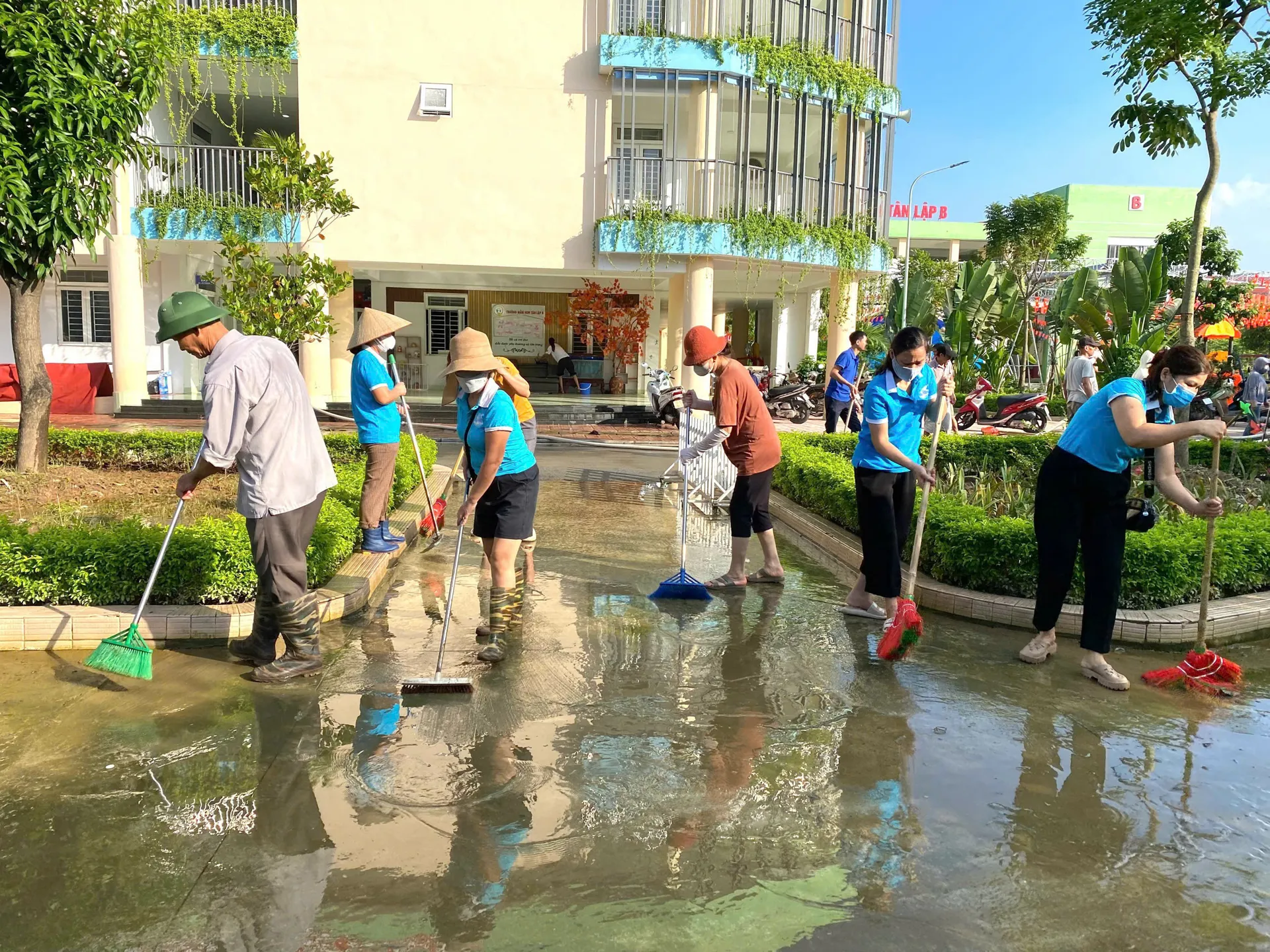 Kinhtedothi - Ngày 4/10, Ủy ban MTTQ xã Ô Diên đã huy động cán bộ, công chức cơ quan và đoàn viên, hội viên các tổ chức chính trị, xã hội trên địa bàn tham gia hỗ trợ tổng vệ sinh môi trường tại Trường Mầm non Tân Lập B và các nhà văn hóa khu vực Tân Lập. Đây là các khu vực bị úng ngập nặng do bão số 10.