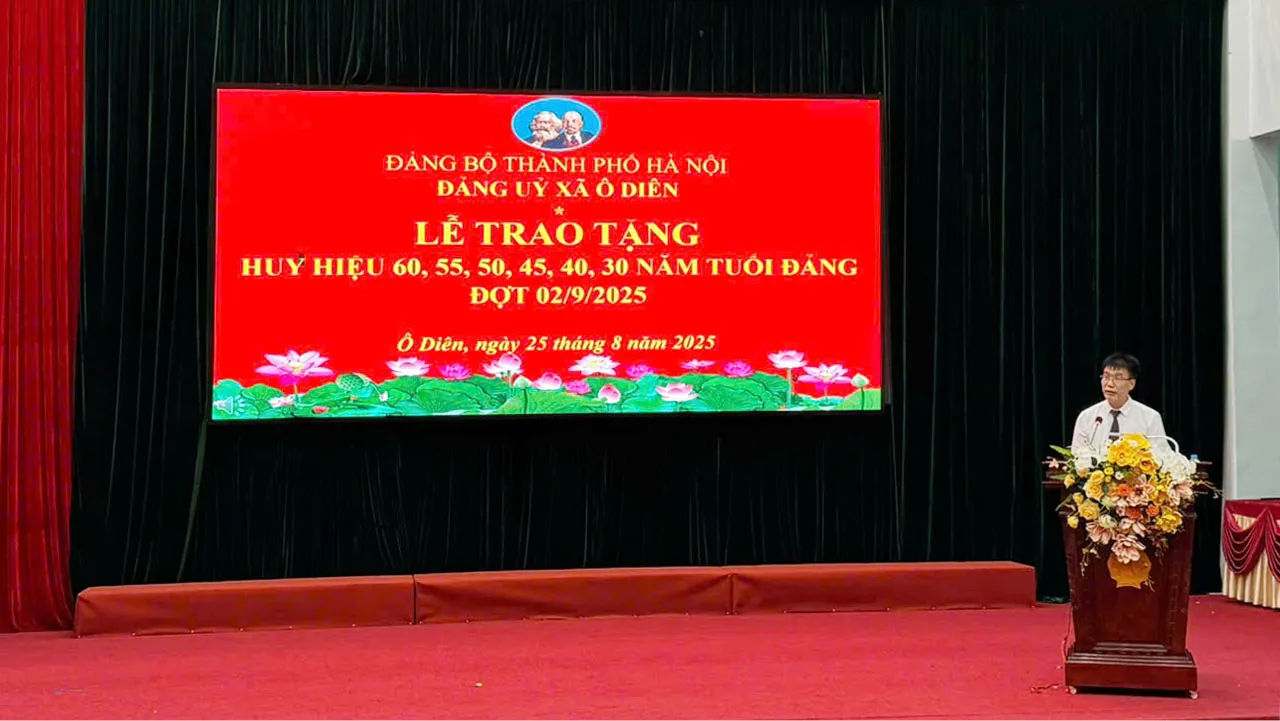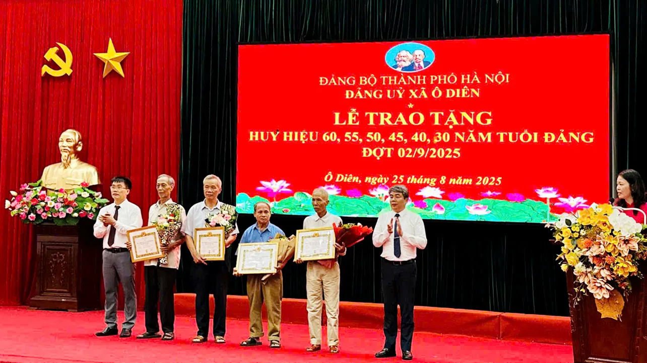 Kinhtedothi – Nhân dịp kỷ niệm 80 năm Cách mạng tháng Tám thành công (19/8/1945 – 19/8/2025) và Quốc khánh nước Cộng hòa xã hội chủ nghĩa Việt Nam (2/9/1945 – 2/9/2025), chiều 25/8, Đảng ủy xã Ô Diên (TP Hà Nội) tổ chức lễ trao Huy hiệu Đảng đợt 2/9.