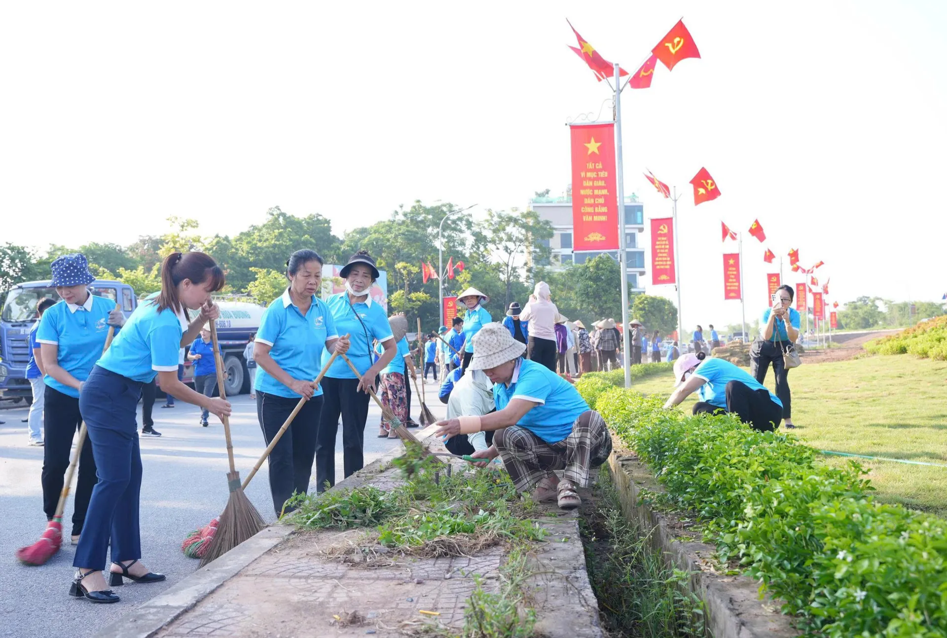 Ngay sau lễ ra quân, các lực lượng tham gia cùng Nhân dân trên địa bàn đã đồng loạt tiến hành tổng vệ sinh môi trường, quét dọn lòng, lề đường; thu gom rác thải sinh hoạt và phế liệu cồng kềnh; phát quang cỏ dại, bụi rậm; khơi thông cống rãnh; bóc xóa quảng cáo, rao vặt sai quy định; chăm sóc bồn hoa, cây xanh; tổng vệ sinh tại trụ sở cơ quan, trường học, nhà văn hóa, đình, chùa; đồng thời tổ chức vớt rác, khơi thông dòng chảy, làm sạch mặt nước và hai bên bờ tại các tuyến sông, kênh, mương trên địa bàn xã Phù Đổng.