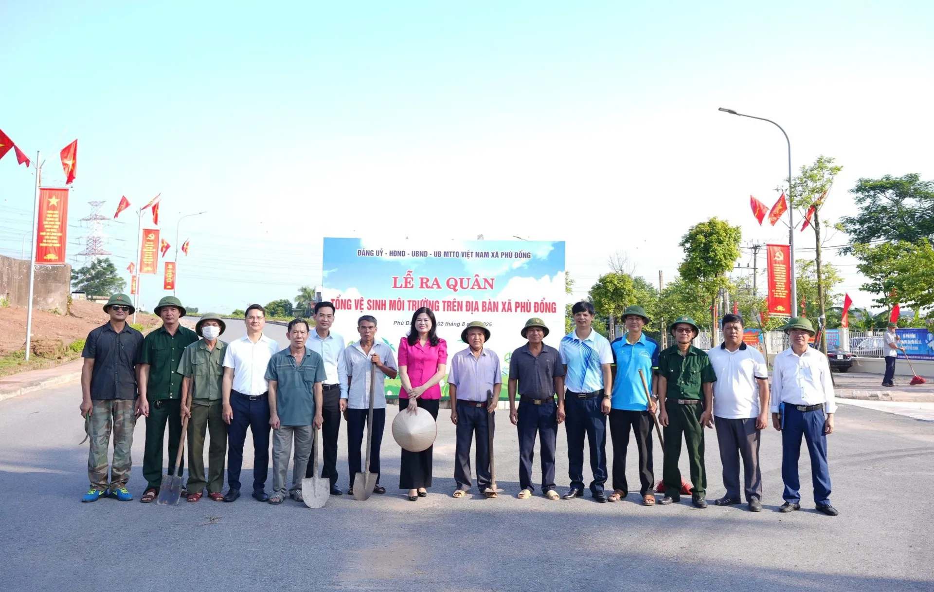 Kinhtedothi-Ngày 2/8, tại cổng trụ sở xã Phù Đổng, Đảng ủy- HĐND- UBND – Ủy ban MTTQ Việt Nam xã Phù Đổng đã tổ chức lễ phát động ra quân tổng vệ sinh môi trường trên toàn địa bàn xã. Tham dự buổi lễ có Bí thư Đảng ủy, Chủ tịch HĐND xã Phù Đổng Đặng Thị Huyền; Phó Bí thư Thường trực Đảng ủy xã Nguyễn Mậu Quang; Phó Bí thư Đảng ủy, Chủ tịch UBND xã Đào Đức Minh.