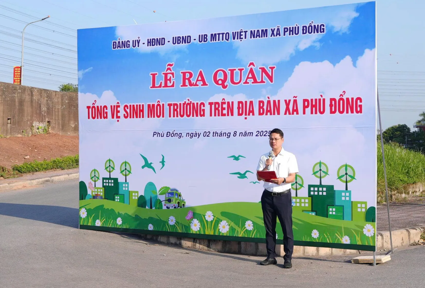Phát biểu tại lễ ra quân, Phó Bí thư Đảng ủy, Chủ tịch UBND xã Phù Đổng Đào Đức Minh cho biết: Để tạo chuyển biến rõ rệt trong nhận thức và hành động của cấp ủy, chính quyền, MTTQ và toàn thể Nhân dân về vai trò, trách nhiệm trong việc giữ gìn vệ sinh môi trường, xây dựng nếp sống văn minh, hiện đại. UBND xã xây dựng Kế hoạch tổ chức lễ phát động với mục tiêu: Phát động phong trào thi đua thiết thực, đồng loạt từ cơ sở, qua đó lan tỏa mạnh mẽ thông điệp Hà Nội "Sáng - Xanh - Sạch - Đẹp", nâng cao chất lượng sống, gìn giữ cảnh quan và bảo vệ sức khỏe cộng đồng.