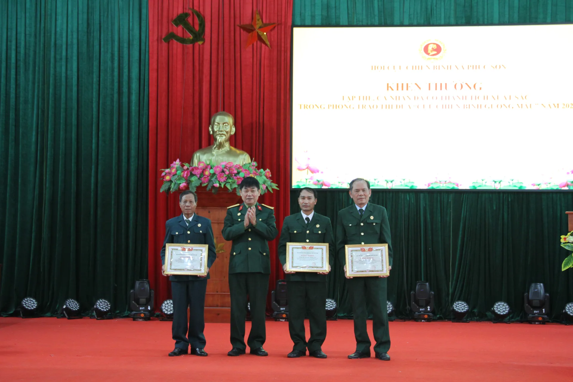 Đại tá Nguyễn Xuân Hà – Phó Chủ tịch Hội CCB TP Hà Nội tặng Bằng khen của Hội CCB TP Hà Nội cho Hội CCB xã Phúc Sơn.
