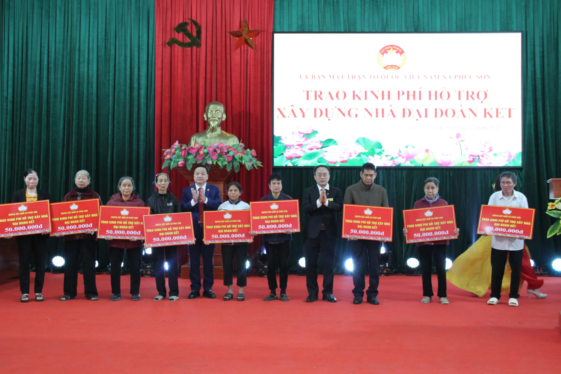 Lãnh đạo Đảng ủy và MTTQ xã Phúc Sơn trao kinh phí hỗ trợ xây nhà đại đoàn kết cho 9 hộ dân trên địa bàn.