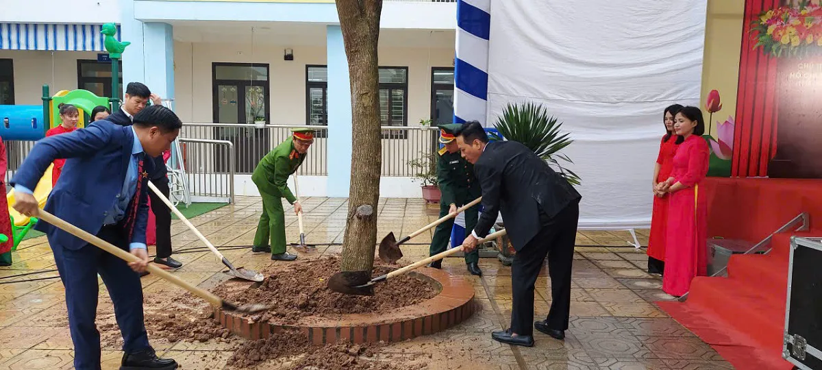 Hưởng ứng Tết trông cây 2026, lãnh đạo xã Quảng Bị trồng cây tại Trường Mầm non Hoàng Diệu
