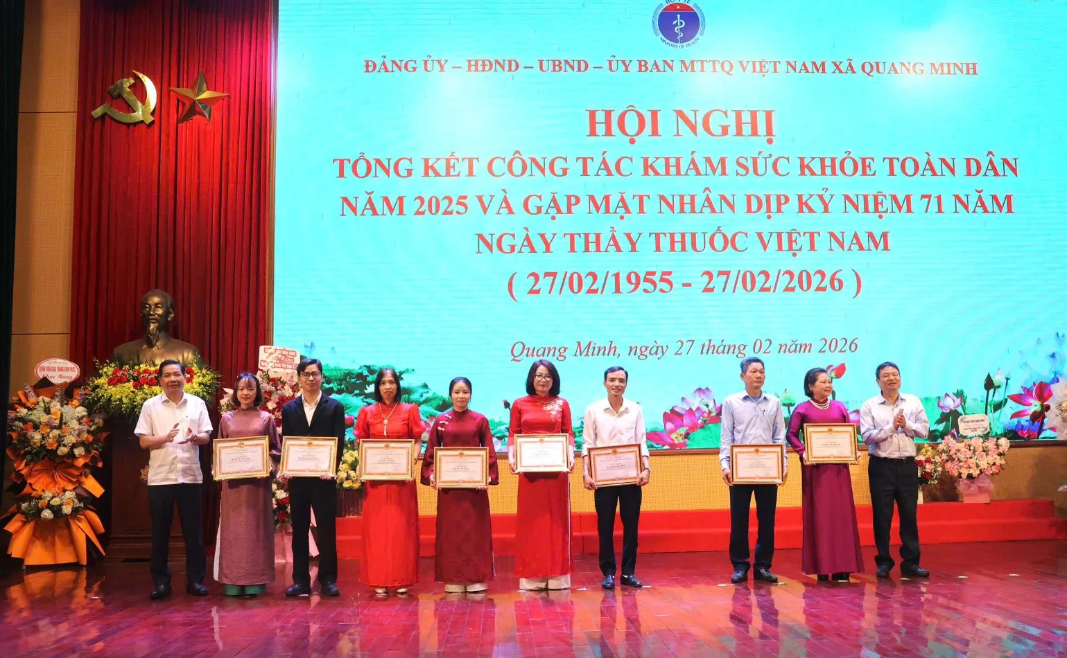 Nhân dịp này, UBND xã Quang Minh đã khen thưởng 8 tập thể và 16 cá nhân có thành tích xuất sắc trong công tác khám, chữa bệnh và chăm sóc sức khỏe Nhân dân năm 2025.