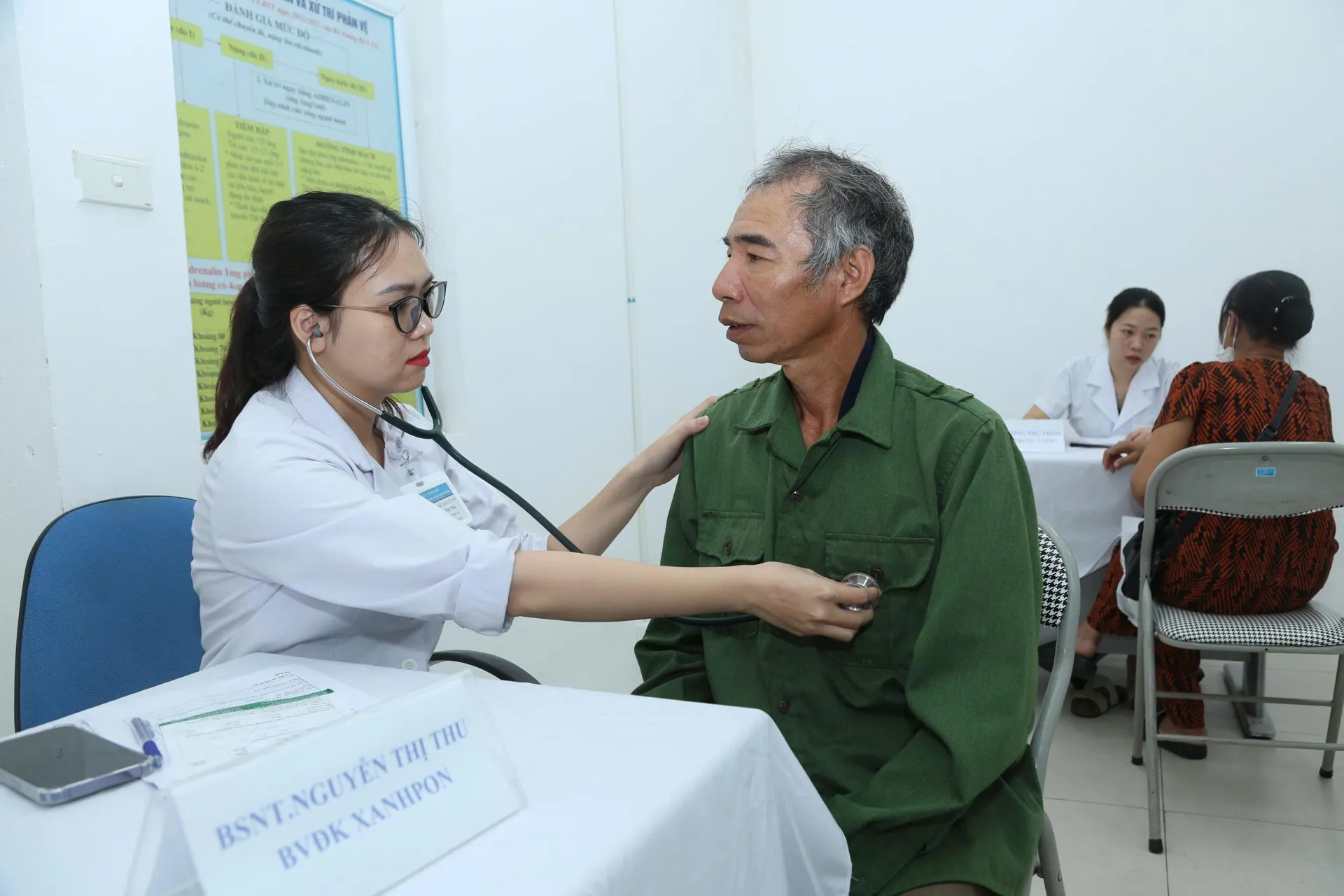 Người dân đang được các nhân viên y tế kiểm tra sức khỏe.