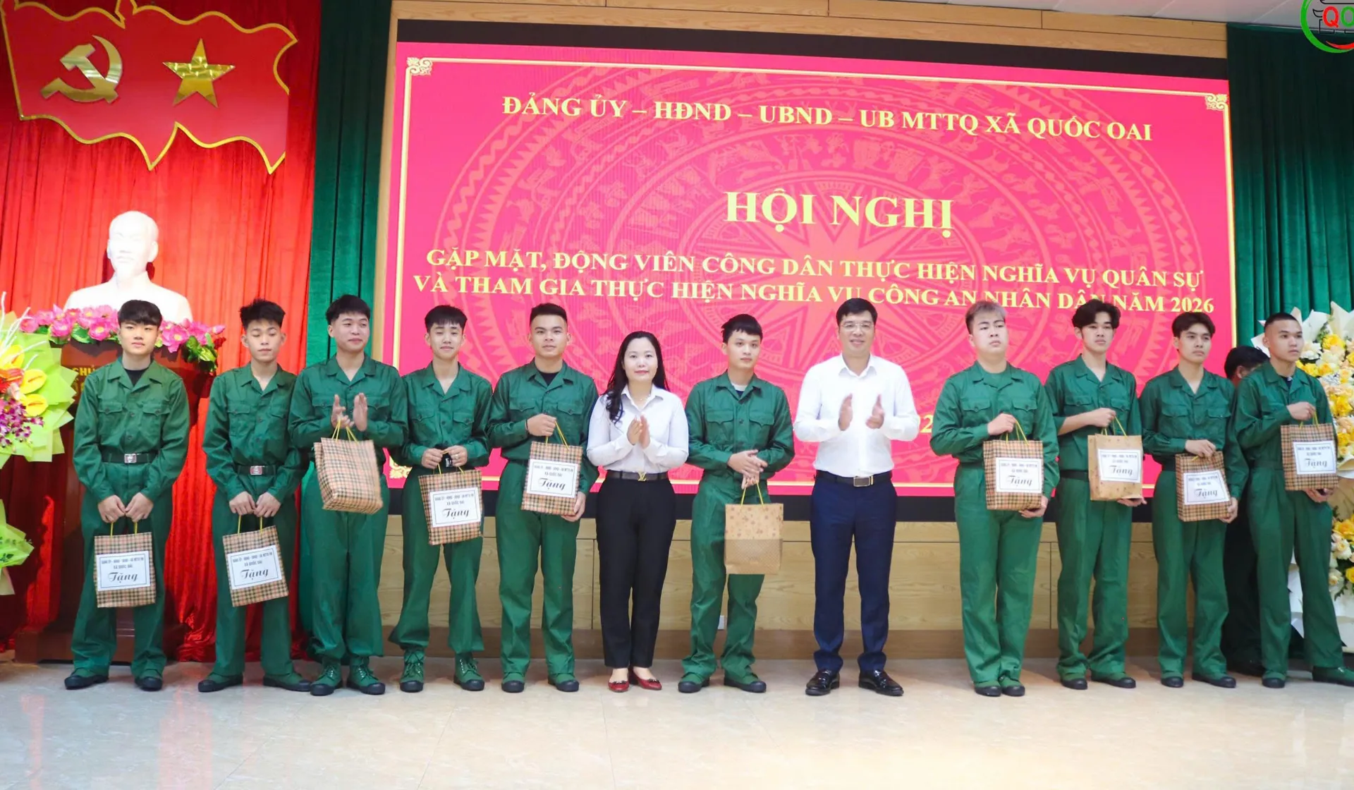Xã Quốc Oai khen thưởng cho các tân binh có tinh thần xung phong thực hiện nghĩa vụ quân sự năm 2026; trao tặng 5 sổ tiết kiệm cho tân binh có hoàn cảnh khó khăn cùng nhiều phần quà ý nghĩa.