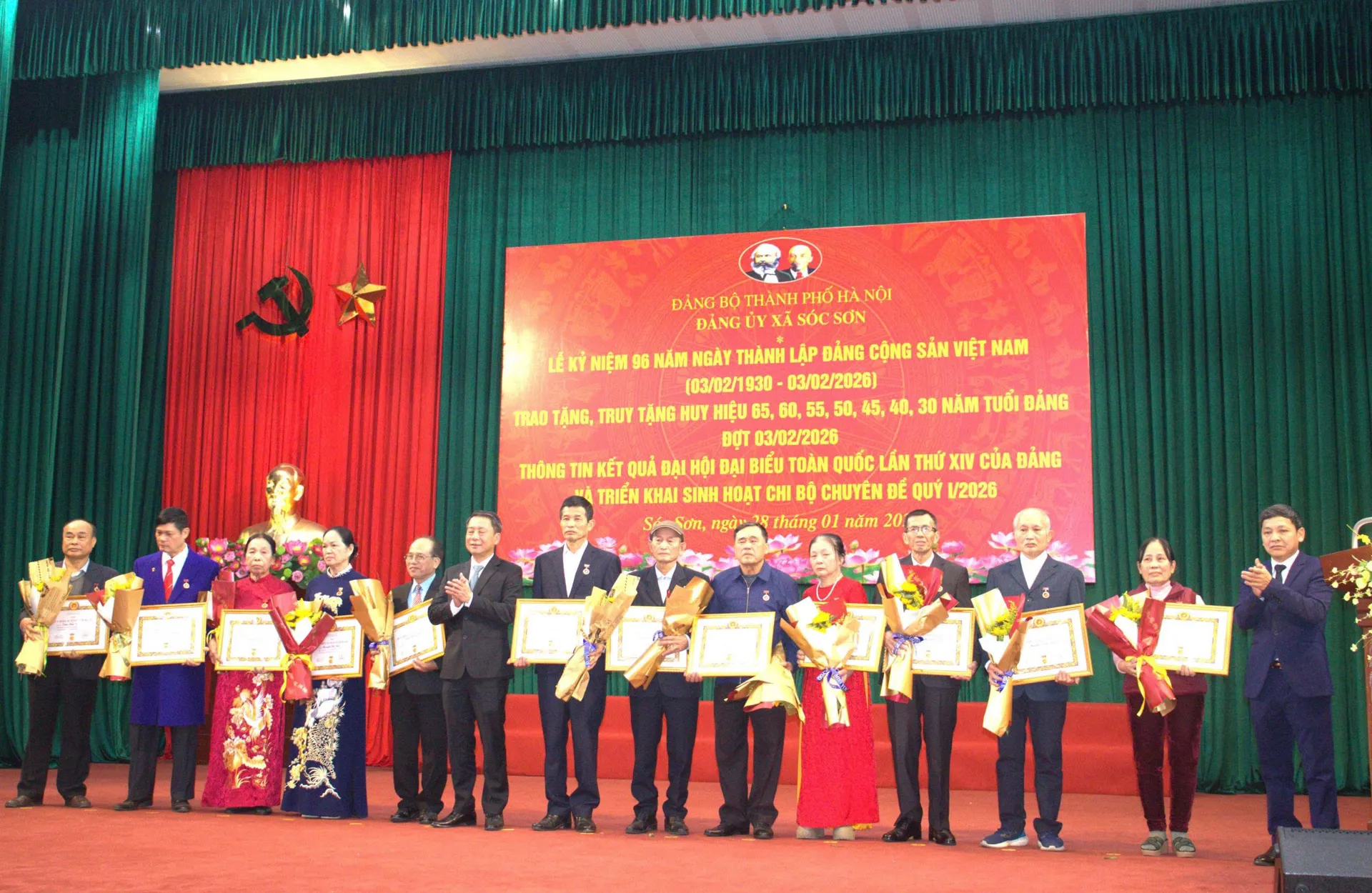 Tại buổi lễ, Đảng bộ xã Sóc Sơn đã truy tặng và trao Huy hiệu Đảng tặng 122 đảng viên. Trong đó, có 4 đảng viên được nhận Huy hiệu 65 năm tuổi Đảng, 8 đảng viên được nhận Huy hiệu 60 năm tuổi Đảng, 40 đảng viên nhận Huy hiệu 55 năm tuổi Đảng.