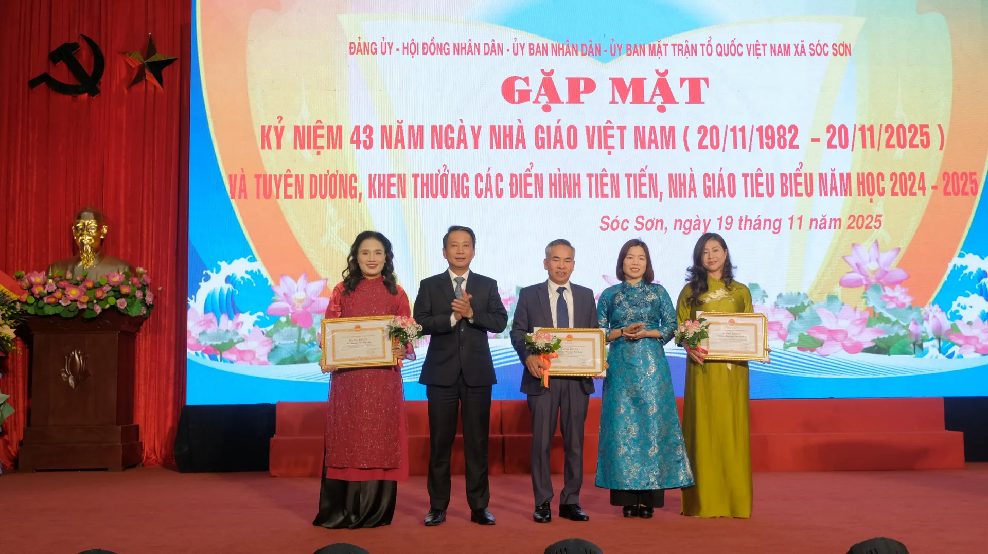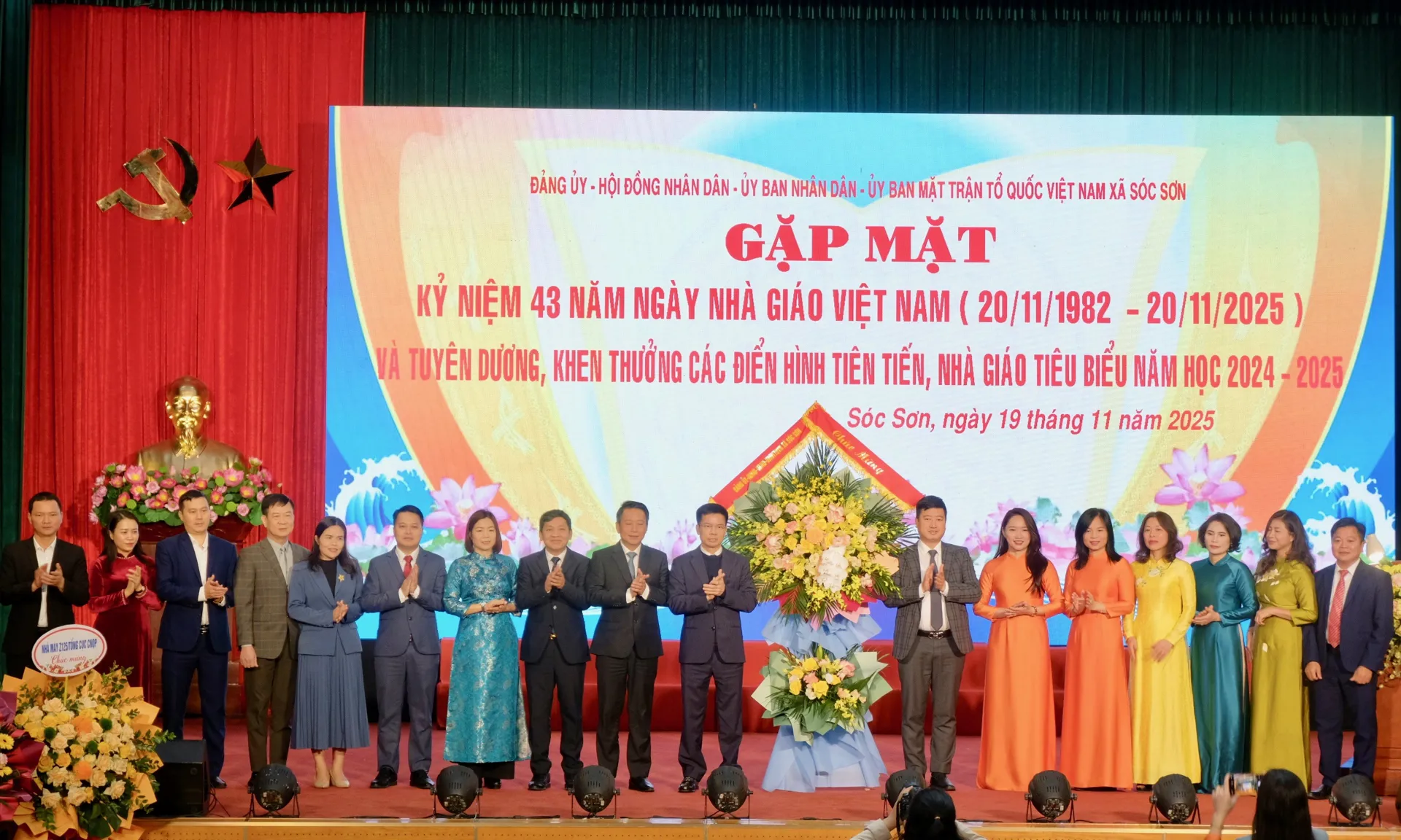 Kinhtedothi - Sáng 19/11, xã Sóc Sơn tổ chức Hội nghị gặp mặt nhân kỷ niệm 43 năm Ngày Nhà giáo Việt Nam 20/11 (20/11/1982-20/11/2025) và tuyên dương, khen thưởng các điển hình tiên tiến, nhà giáo tiêu biểu năm học 2024-2025.