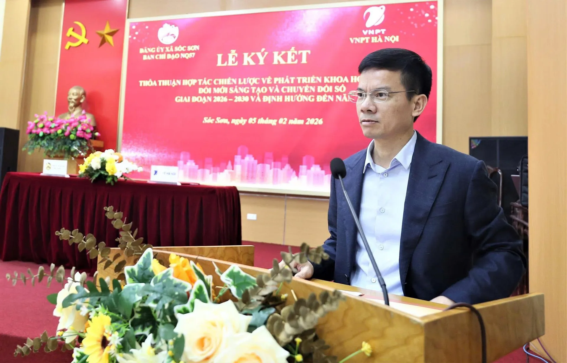 Kinhtedothi - Ngày 5/2, Ban Chỉ đạo 57 xã Sóc Sơn và Tập đoàn Bưu chính Viễn thông Việt Nam (VNPT) Hà Nội đã tổ chức lễ ký kết Thỏa thuận hợp tác chiến lược về phát triển khoa học, công nghệ, đổi mới sáng tạo, chuyển đổi số giai đoạn 2026-2030 và định hướng đến năm 2035.