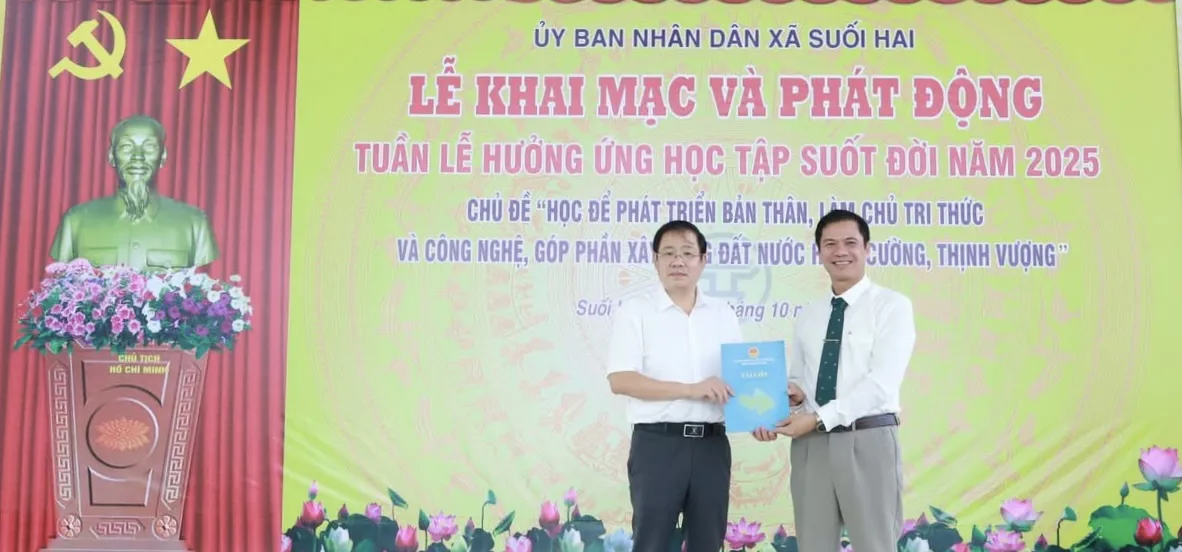Trong Tuần lễ hưởng ứng học tập suốt đời năm 2025, xã Suối Hai cũng xác định các nhiệm vụ trọng tâm.Trong đó, Trung tâm học tập cộng đồng đẩy mạnh hoạt động tuyên truyền, lan tỏa văn hóa đọc, xây dựng thư viện điện tử. Hội Khuyến học xã tiếp tục phát triển phong trào khuyến học, khuyến tài, hỗ trợ học bổng cho học sinh nghèo, nhân rộng các mô hình học tập cộng đồng.