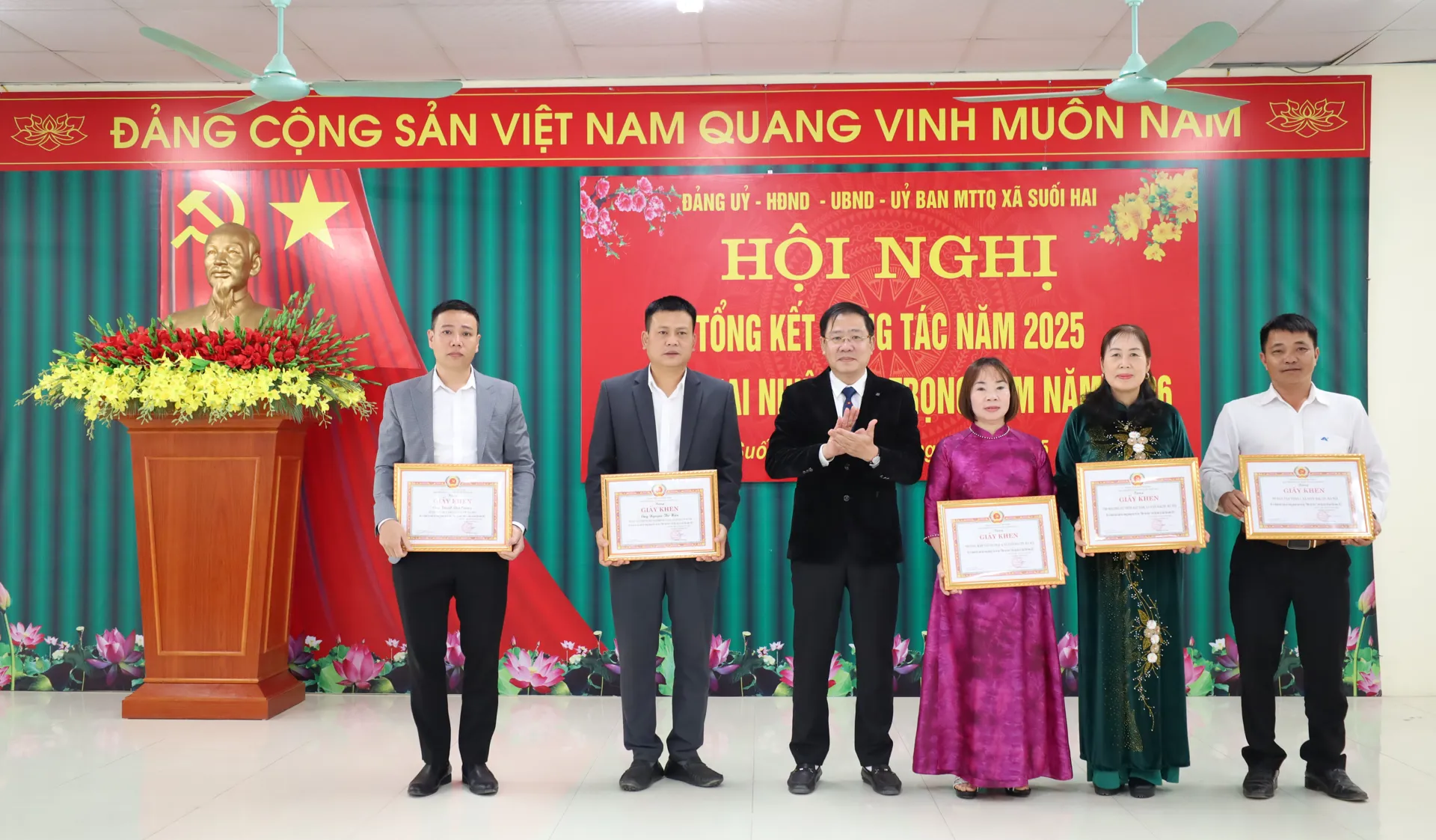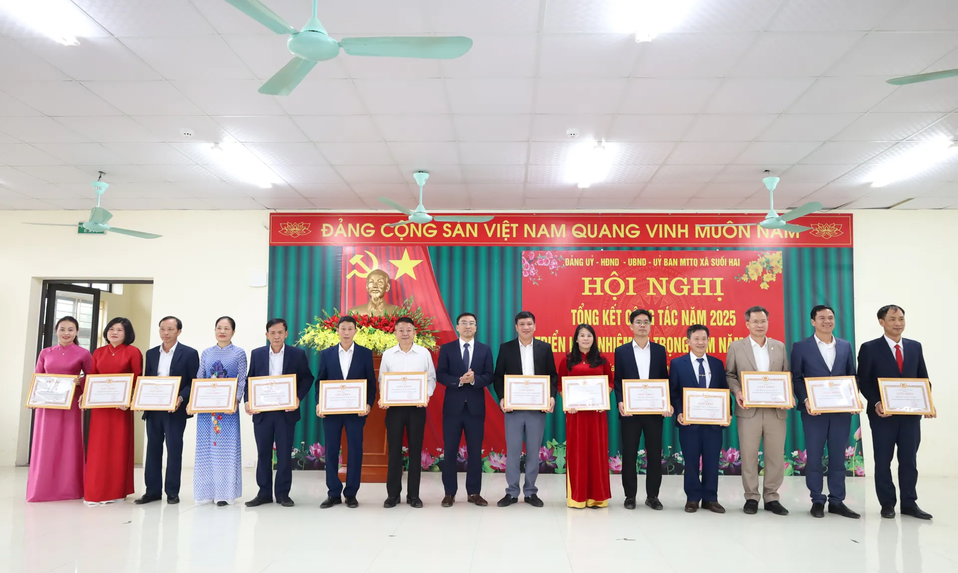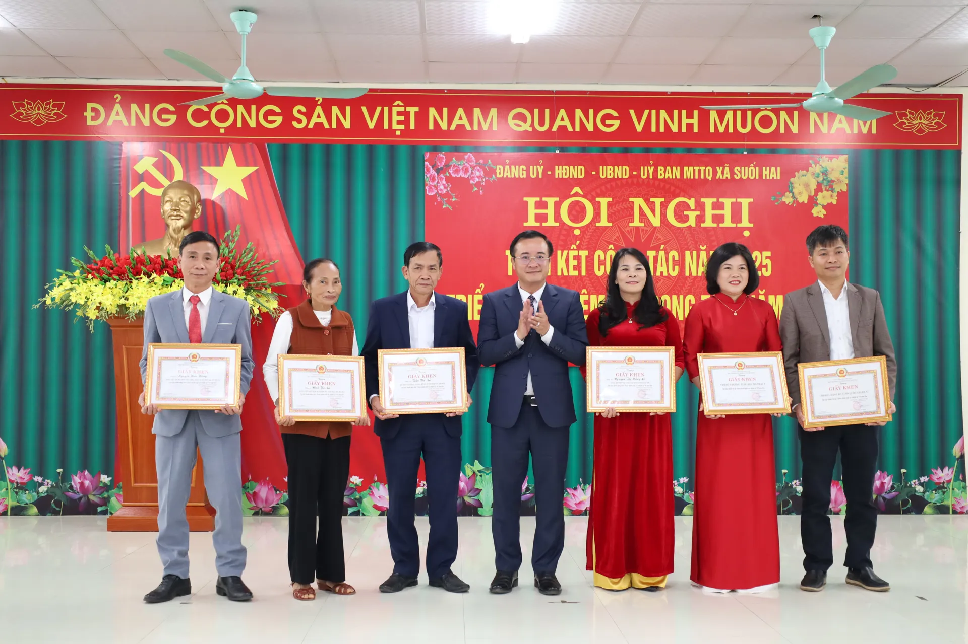 Bí thư Đảng ủy, Chủ tịch HĐND xã Suối Hai Đỗ Mạnh Hưng trao Giấy khen cho các tập thể, cá nhân có thành tích thi đua tốt trong năm 2025.