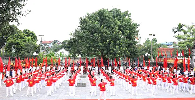 Phần hội diễn ra sôi nổi với các màn biểu diễn trống hội; vũ điệu kết đoàn; trình diễn lân sư rồng và đồng diễn thể dục dưỡng sinh. Các màn đồng diễn huy động đông đảo lực lượng học sinh, hội viên các đoàn thể, câu lạc bộ văn hóa - nghệ thuật địa phương tham gia, tạo khí thế phấn khởi, sôi động và đầy tự hào.