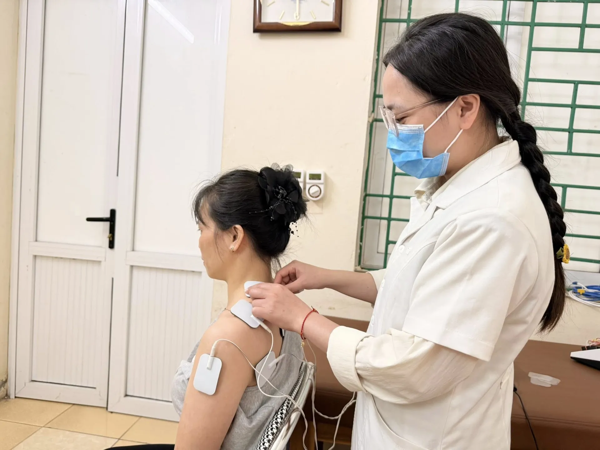 Bác sĩ thực hiện biện pháp điện xung để hỗ trợ bệnh nhân trong điều trị. Ảnh: N.M