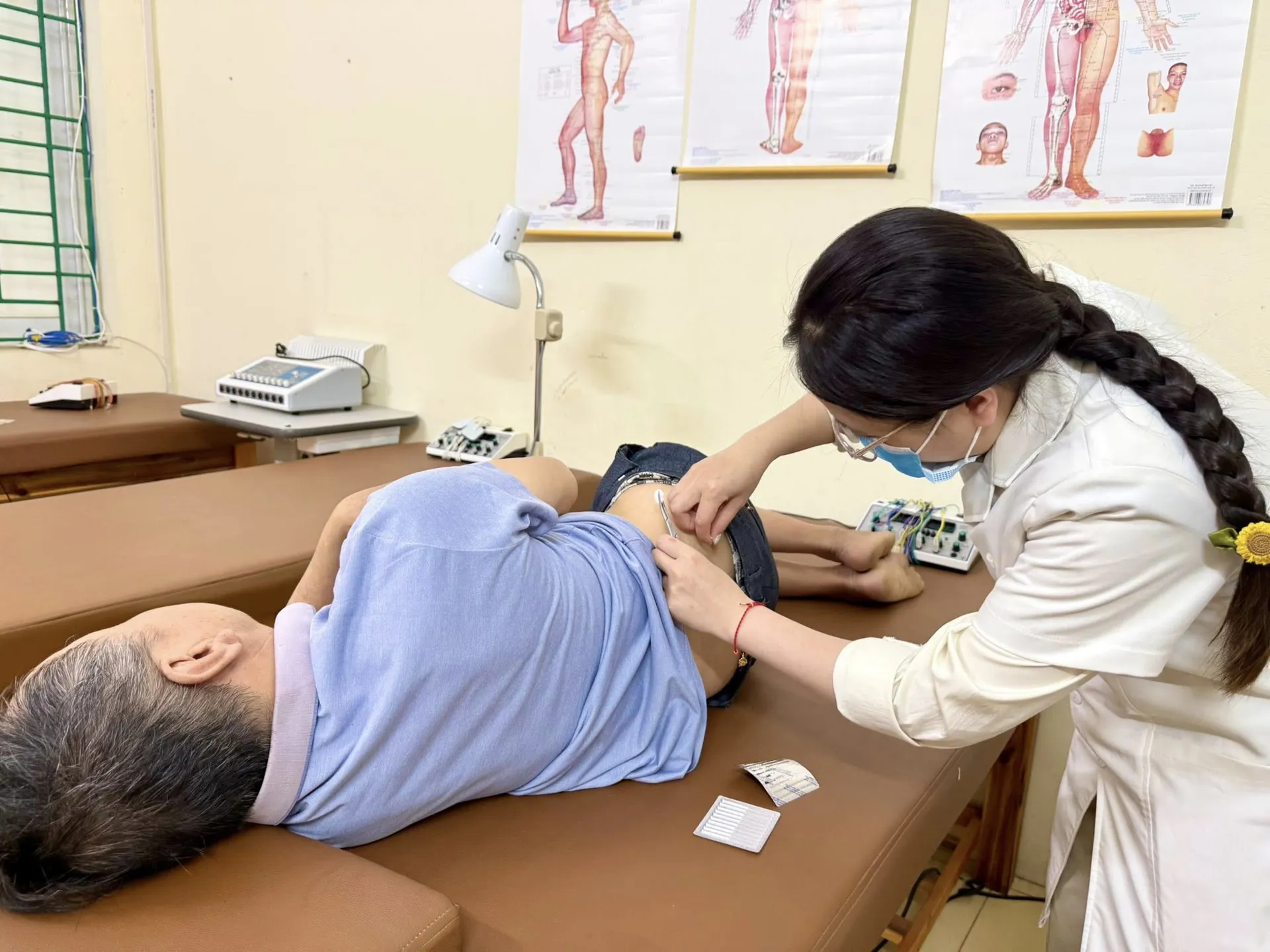 Bác sĩ thực hiện biện pháp châm cứu, điện xung để hỗ trợ bệnh nhân trong điều trị. Ảnh: N.M