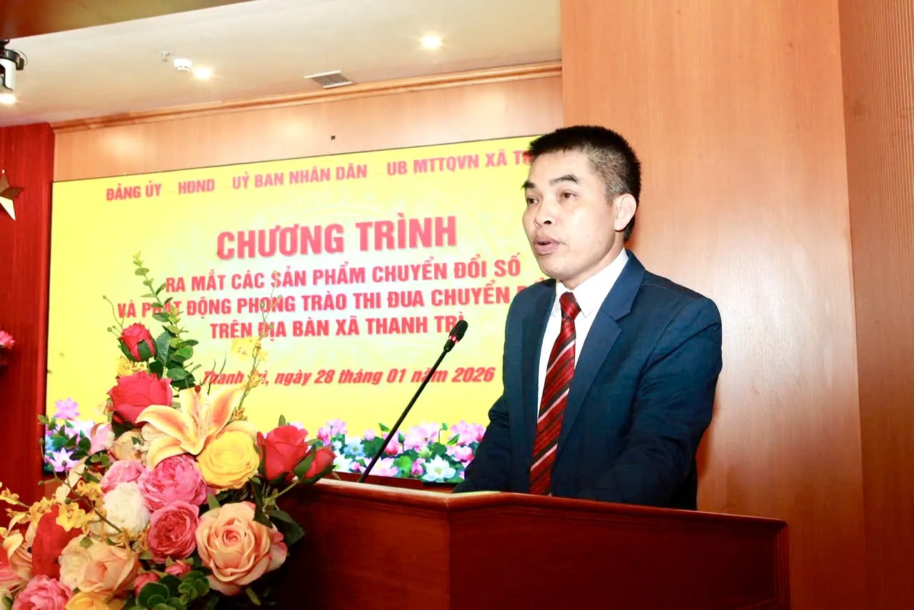 Cùng với việc ra mắt các sản phẩm chuyển đổi số, UBND xã Thanh Trì chính thức phát động phong trào thi đua “Chuyển đổi số trên địa bàn xã giai đoạn 2026 – 2030”, với mục tiêu nâng cao nhận thức, trách nhiệm của cả hệ thống chính trị, cán bộ, đảng viên và Nhân dân; đẩy mạnh ứng dụng công nghệ số trong hoạt động của chính quyền, các tổ chức và đời sống xã hội; huy động sự tham gia tích cực của người dân, doanh nghiệp, lấy người dân làm trung tâm, là chủ thể và động lực của chuyển đổi số.