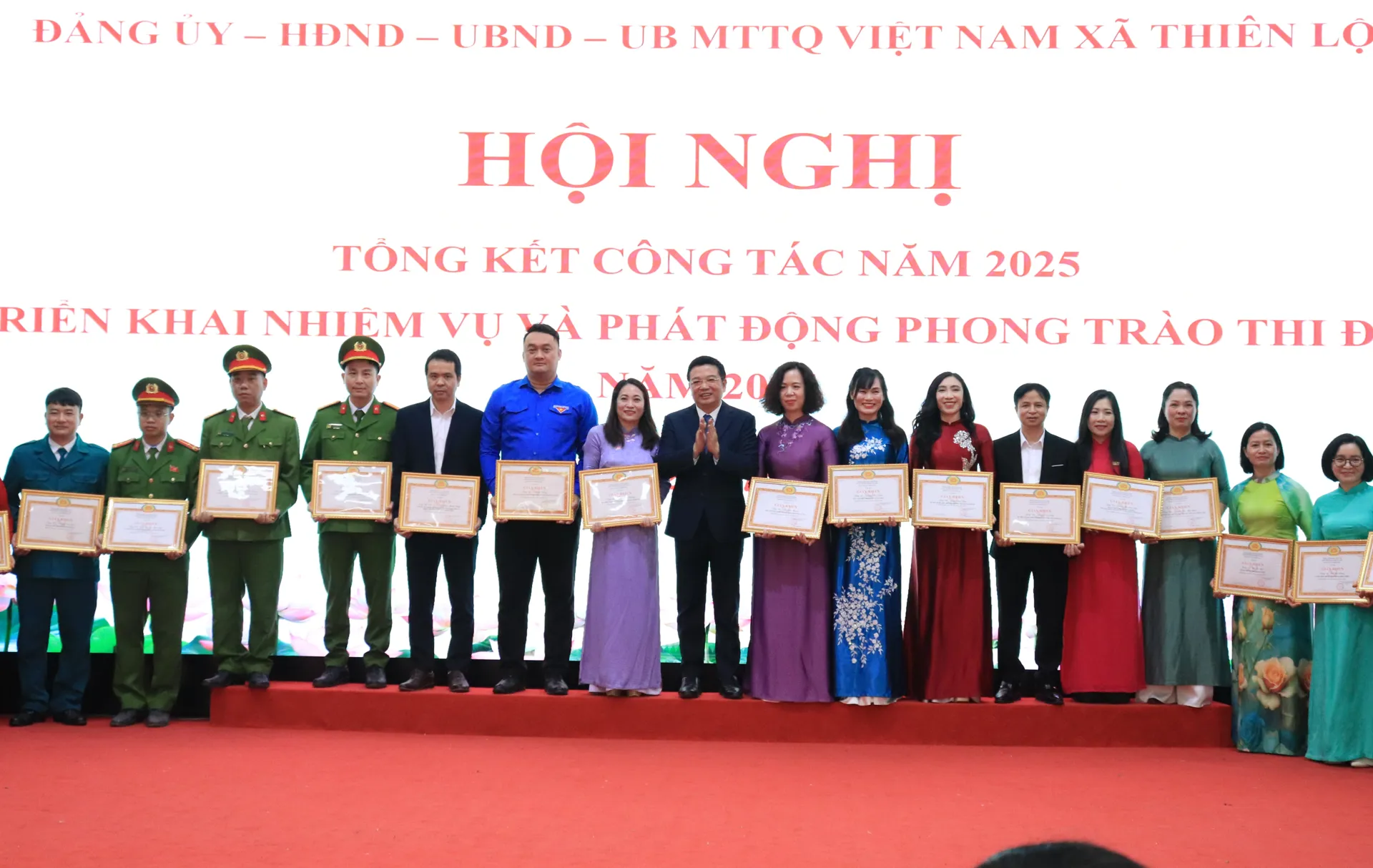 Tại hội nghị, Đảng uỷ - HĐND – UBND – UBMTTQ xã Thiên Lộc đã tuyên dương và khen thưởng 41 tập thể và 121 cá nhân có thành thích xuất sắc trong thực hiện nhiệm vụ chính trị năm 2025 trên địa bàn xã.