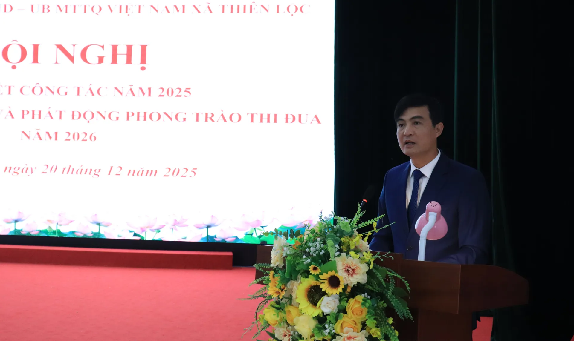 Ngày 20/12, Đảng uỷ - HĐND – UBND – UBMTTQ xã Thiên Lộc đã tổ chức Hội nghị Tổng kết công tác lãnh đạo, chỉ đạo thực hiện nhiệm vụ chính trị năm 2025, triển khai nhiệm vụ năm 2026; Tổng kết công tác thi đua, khen thưởn năm 2025 và phát động phong trào thi đua năm 2026.