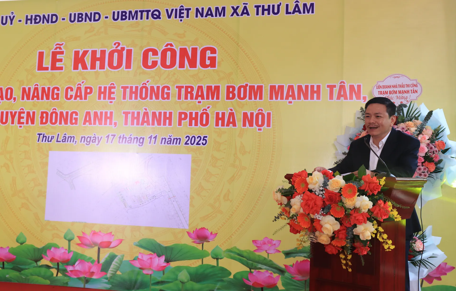 Phó Chủ tịch UBND xã Thư Lâm Lại Mạnh Cường nhấn mạnh tầm quan trọng của dự án đối với sự phát triển đô thị của xã.