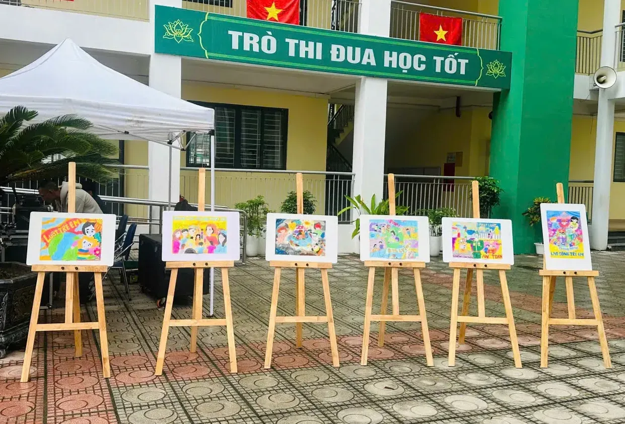 Trưng bày tranh vẽ của học sinh Trường THCS Đặng Xá.