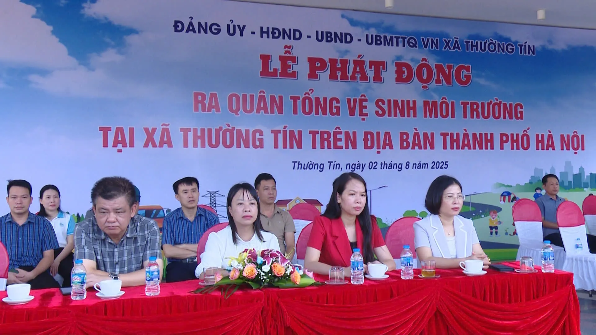 Kinhtedothi - Thiết thực chào mừng kỷ niệm 80 năm cách mạng Tháng Tám, Quốc Khánh 2/9, chào mừng Đại hội Đảng các cấp tiến tới Đại hội đại biểu toàn quốc lần thứ XIV của Đảng, sáng 2/8, UBND xã Thường Tín tổ chức lễ phát động ra quân tổng vệ sinh môi trường.