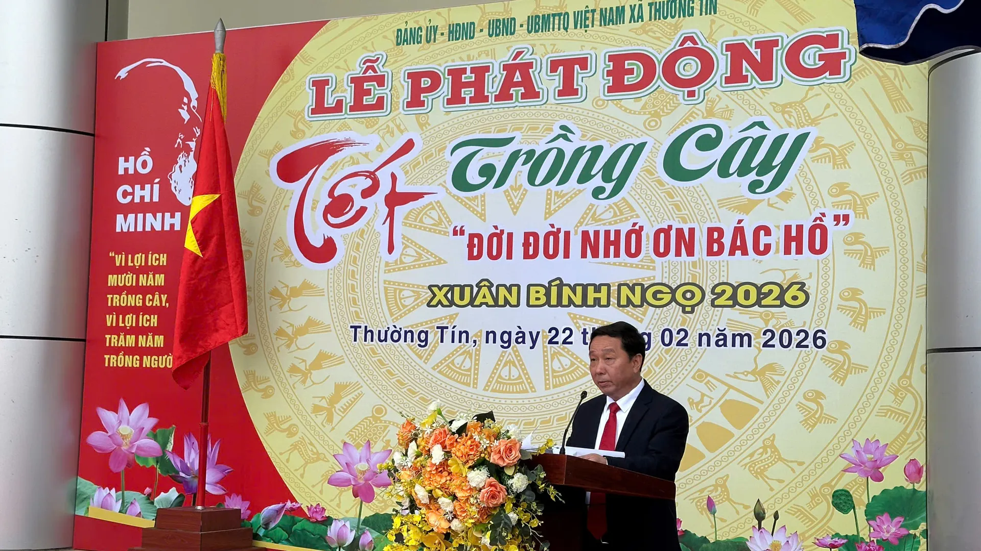 Kinhtedothi - Sáng 22/2, tại khu vực Bể bơi Hồng Hà, thuộc trung tâm xã Thường Tín, Đảng ủy, UBND xã Thường Tín tổ chức Lễ phát động Tết trồng cây "Đời đời nhớ ơn Bác Hồ" xuân Bính Ngọ 2026.