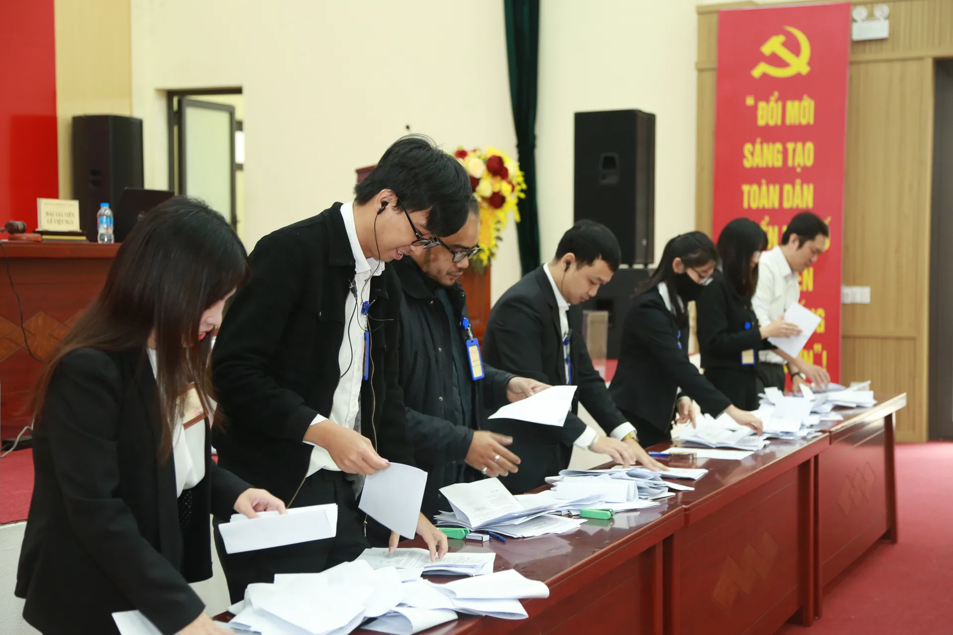 Ban tổ chức kiểm phiếu vòng 1.