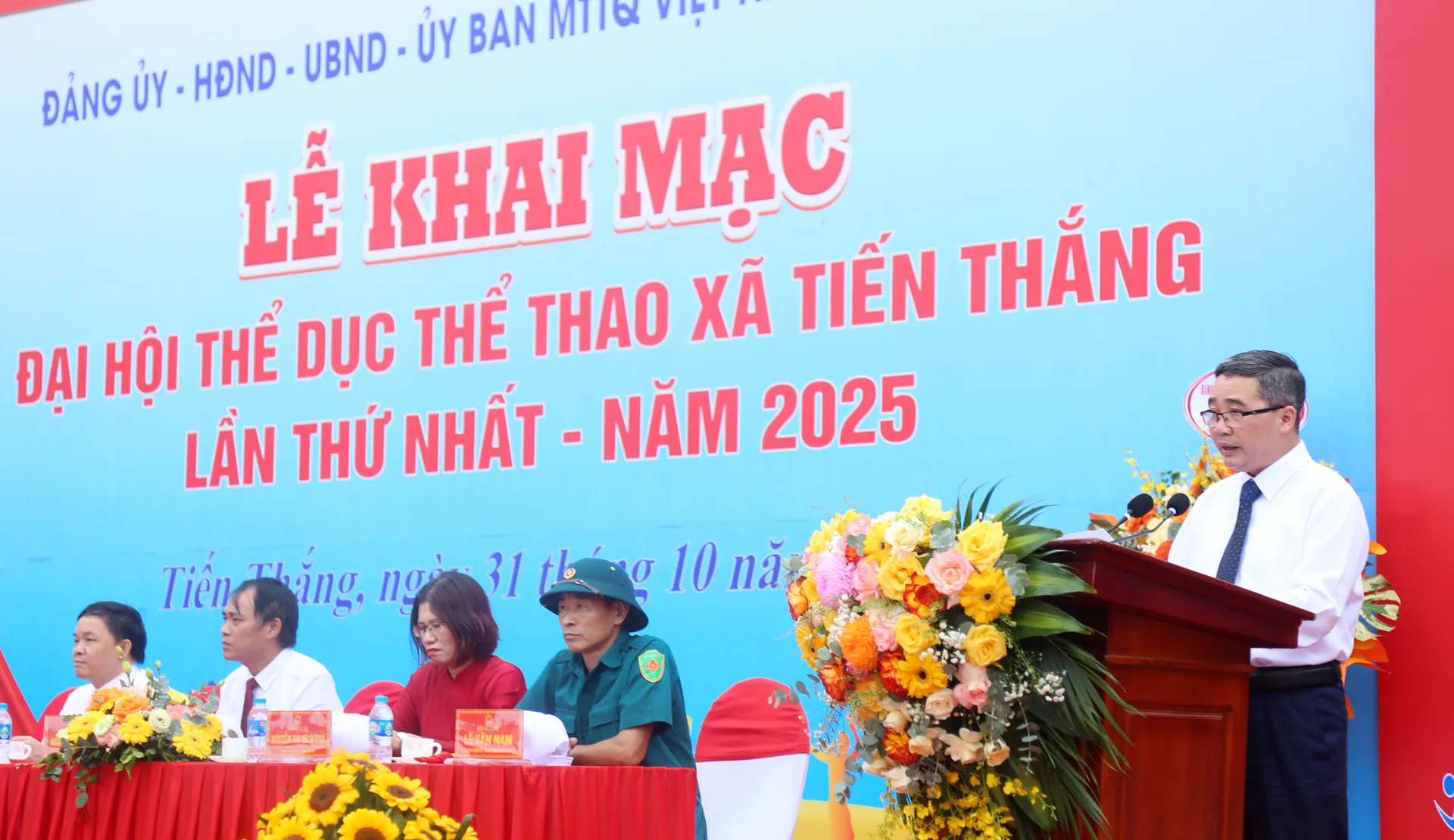 Phát biểu khai mạc đại hội, Phó Bí thư Đảng ủy, Chủ tịch UBND xã Tiến Thắng Nguyễn Minh Hải cho biết, cùng với nhiệm vụ xây dựng và phát triển kinh tế - xã hội, đảm bảo an ninh - quốc phòng; xã Tiến Thắng luôn quan tâm phát triển sự nghiệp văn hoá - thể dục thể thao, đẩy mạnh phong trào "Toàn dân rèn luyện thân thể theo gương Bác Hồ vĩ đại" nhằm tăng cường sức khoẻ, hoàn thiện thể chất con người, góp phần tích cực vào phát triển nguồn nhân lực, nâng cao đời sống tinh thần cho Nhân dân.